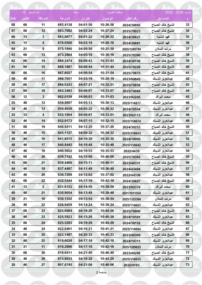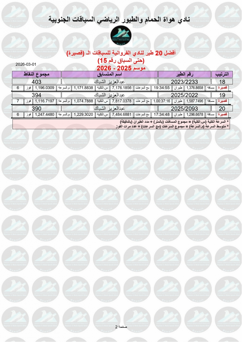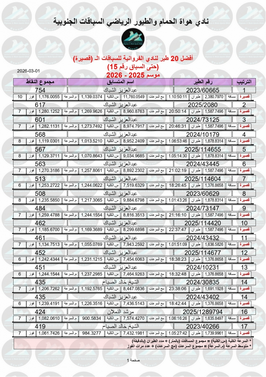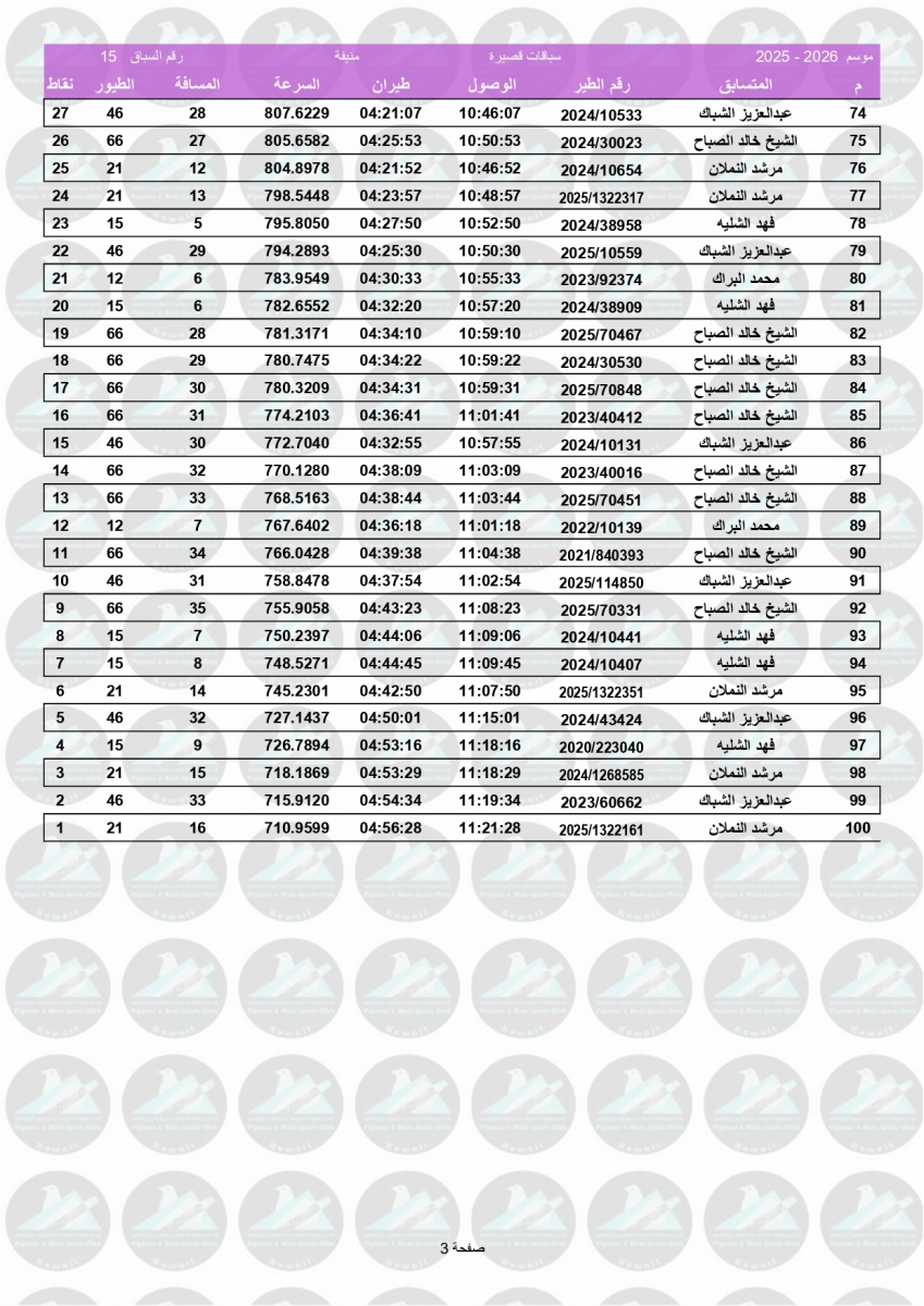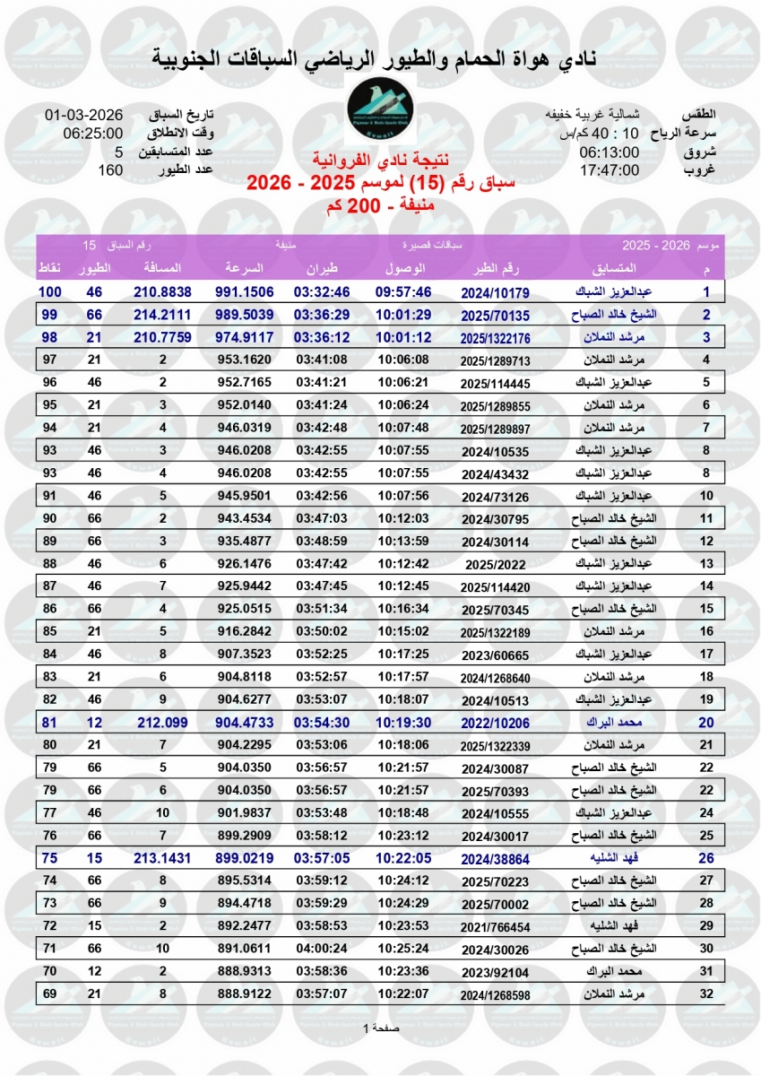 السلام عليكم ورحمة الله وبركاته إليكم نتيجة السباق الخامس عشر – منيفه 200 كم – لنادى الفروانية مبروك الفوز ![]() ![]() ![]() ![]() ![]() ![]() |