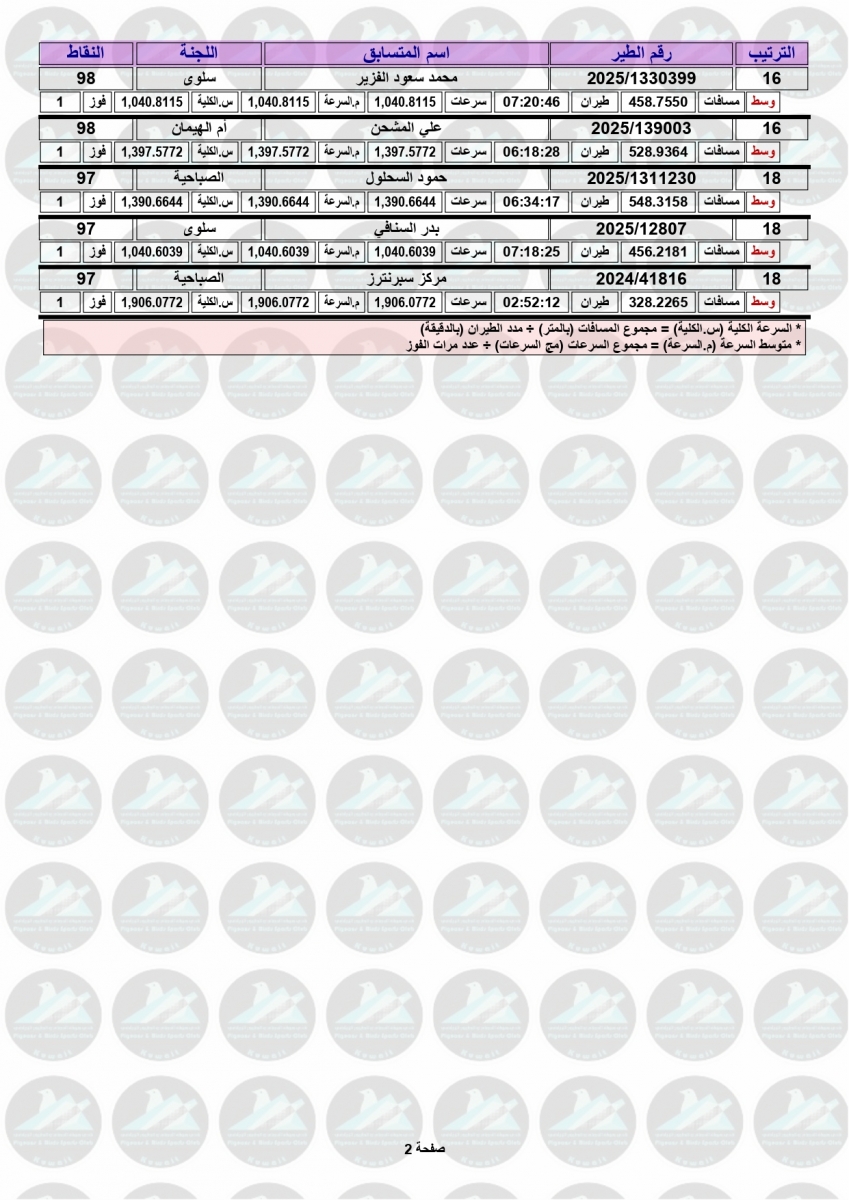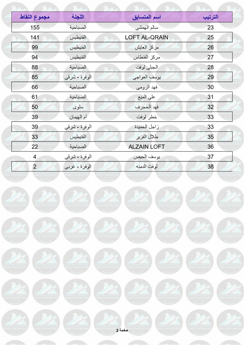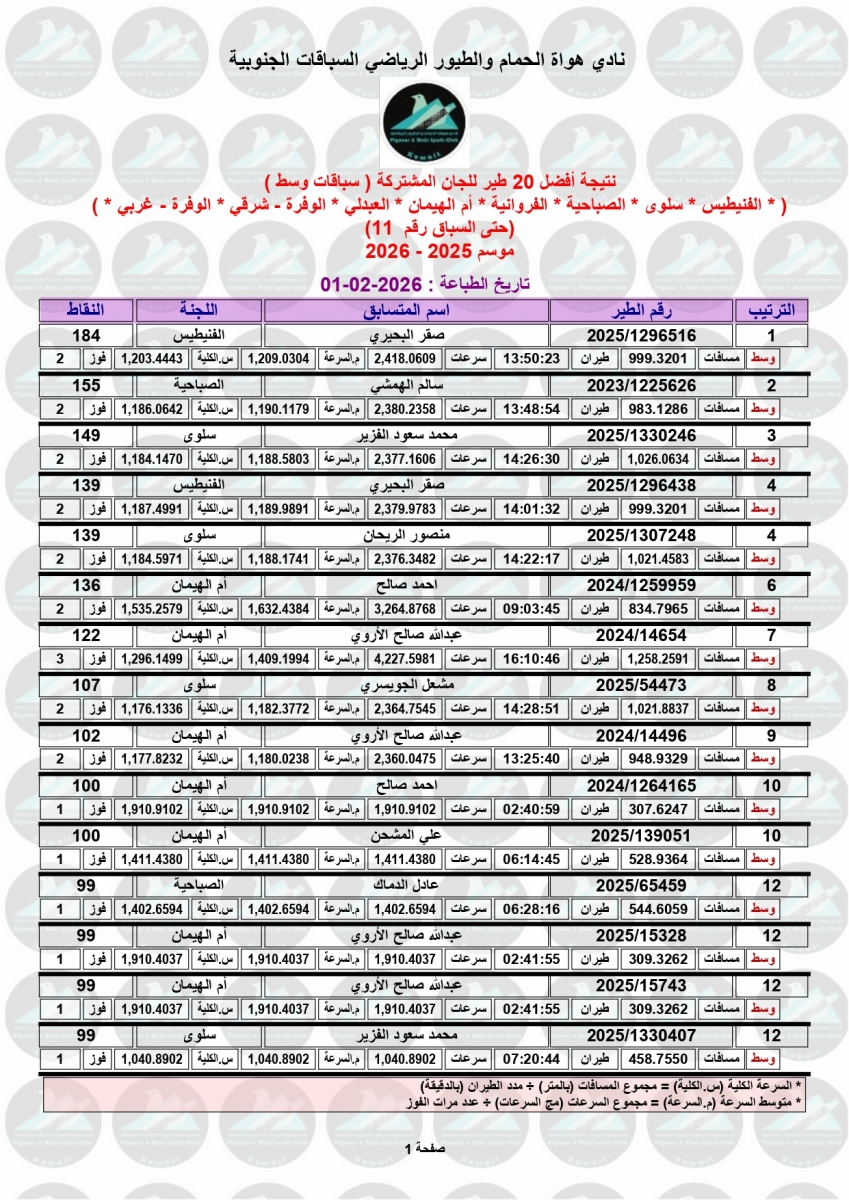 > منتديات الاتحاد الكويتي لسباق حمام الزاجل > منتدي اخبار السباقات > نتائج سباقات الاتحاد الكويتي / Race results > نتيجة السباق الحادي عشر - سلوى 600 كم - السباقات المشتركة