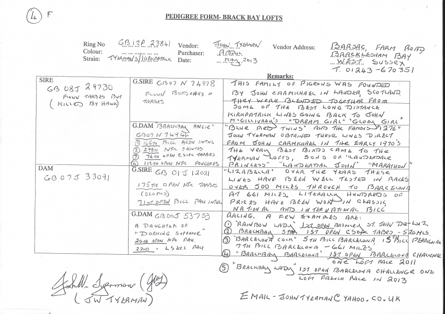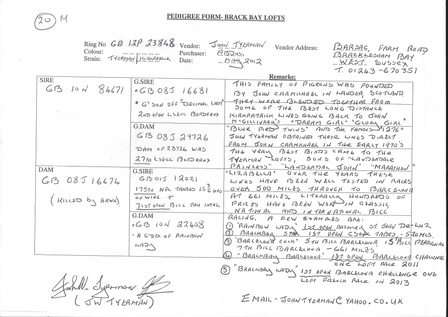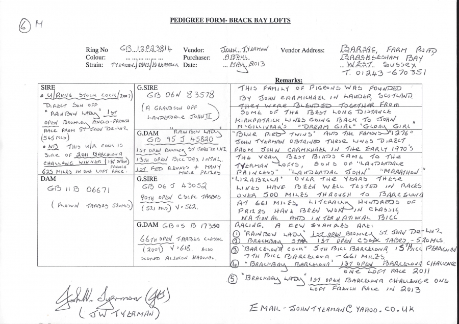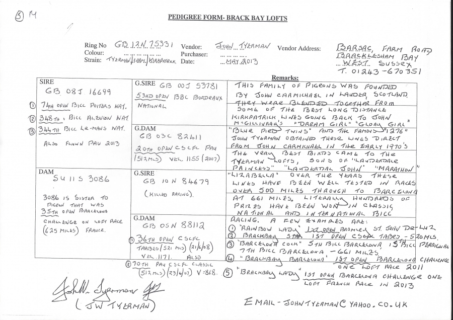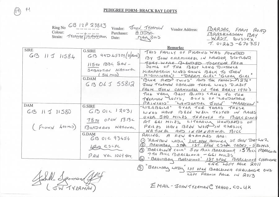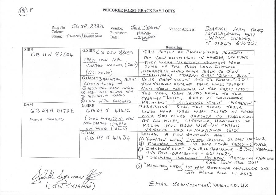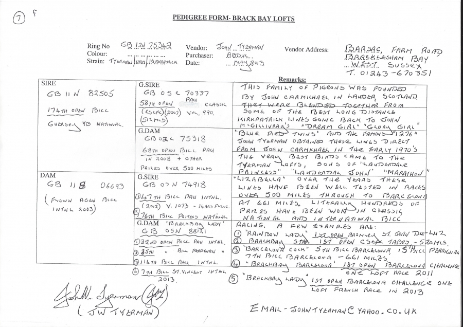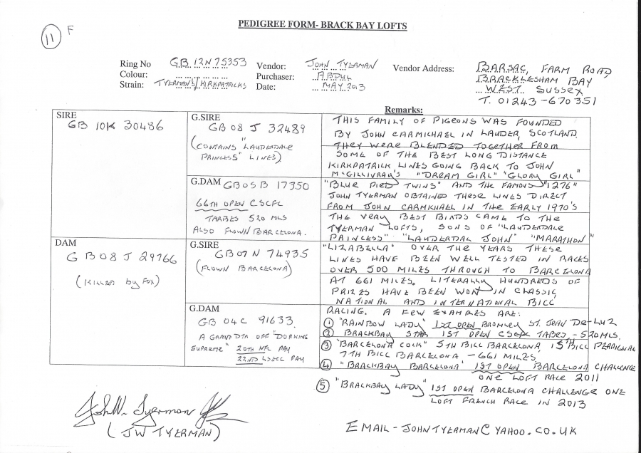 قوه هذا الحمام على عبور هذه المسافات الطويله اتت من السلاله الانجليزيه كيرتابرك ، وهو من ابرز واشهر هواة العالم الذين يملكون هذه السلاله القديمه ، ويملك من نوادر لاينات كيرباترك.