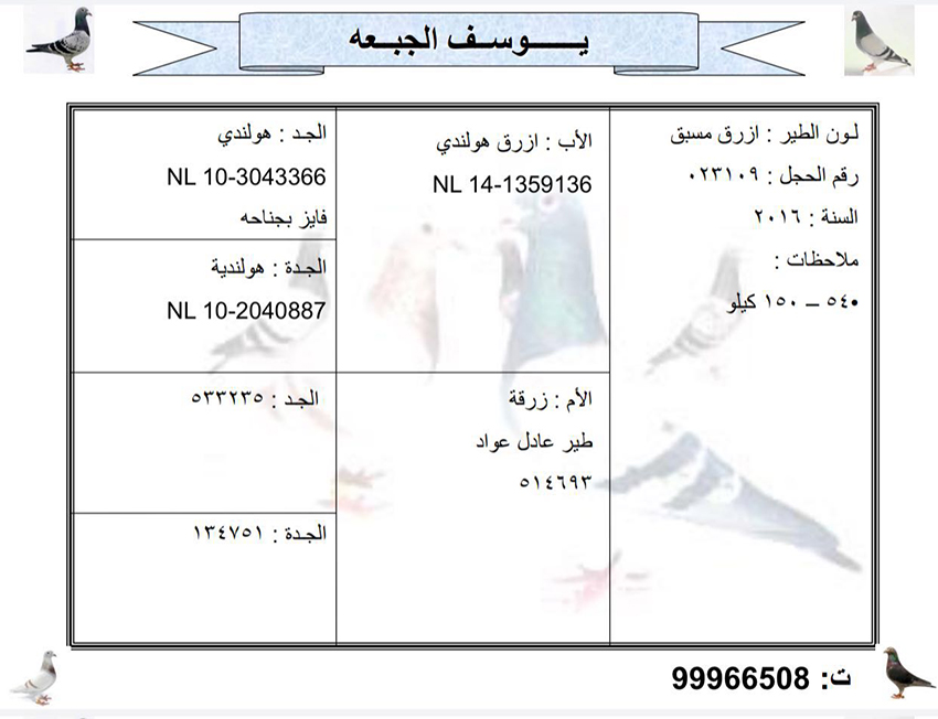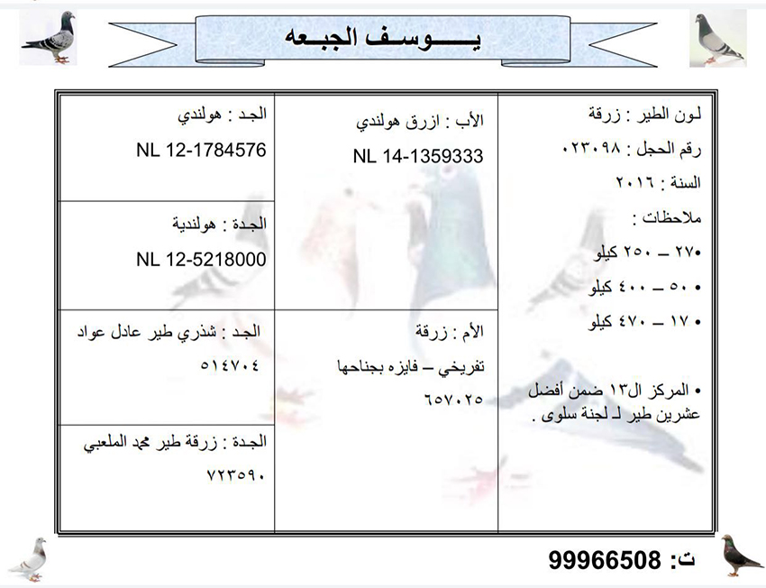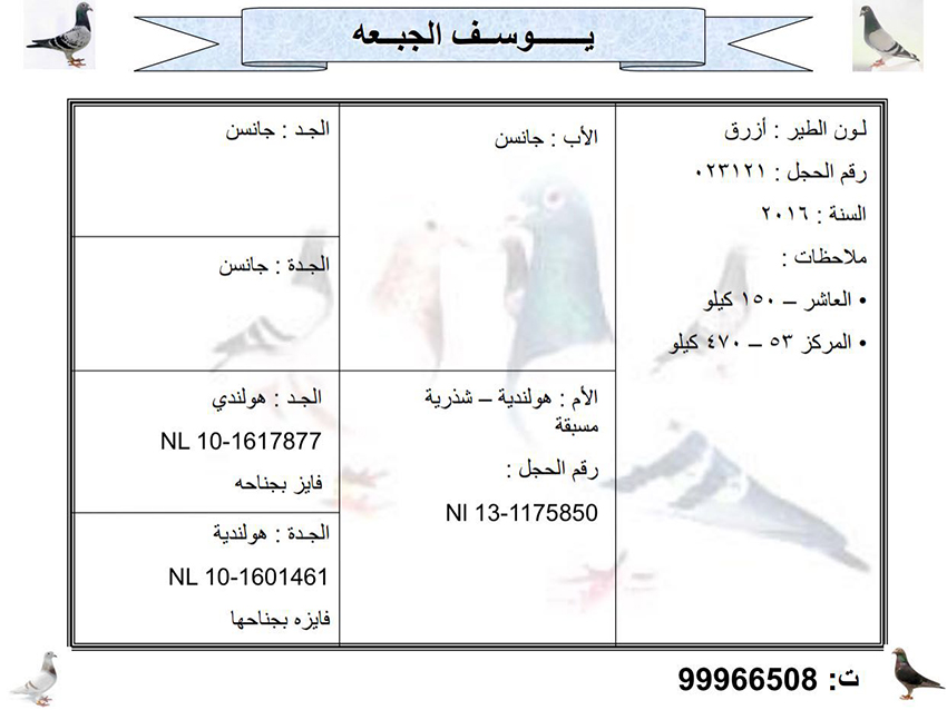 > منتديات الاتحاد الكويتي لسباق حمام الزاجل > منتدي الحمام > مزاد الحمام الزاجل / Pigeon Auction > مزاد البطل يوسف الجبعة