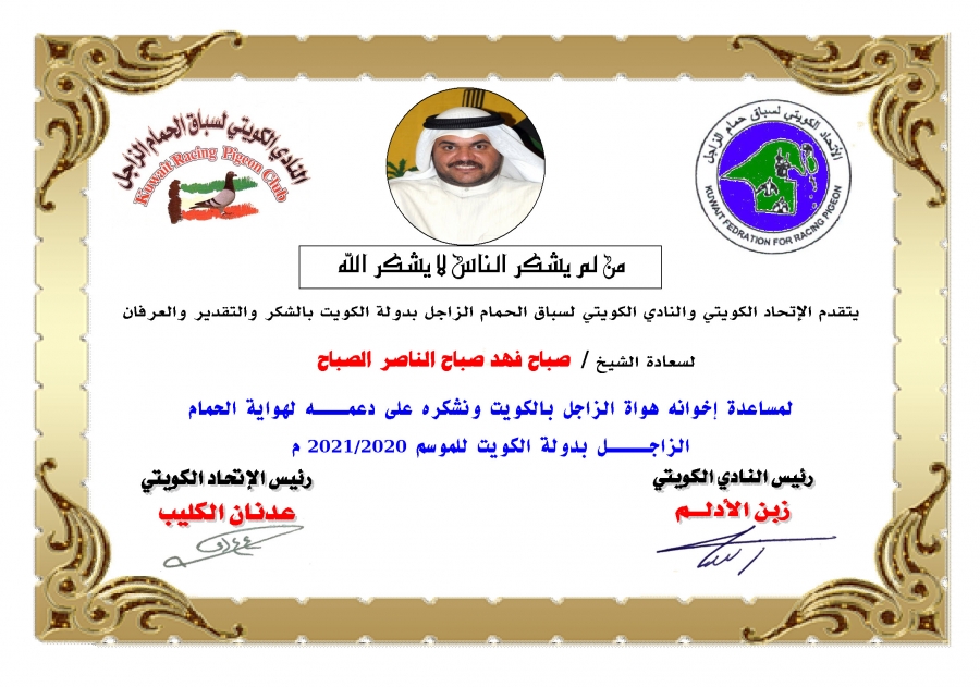 شكر وتقدير لسعادة الشيخ / صباح فهد صباح الناصر الصباح ![]() |