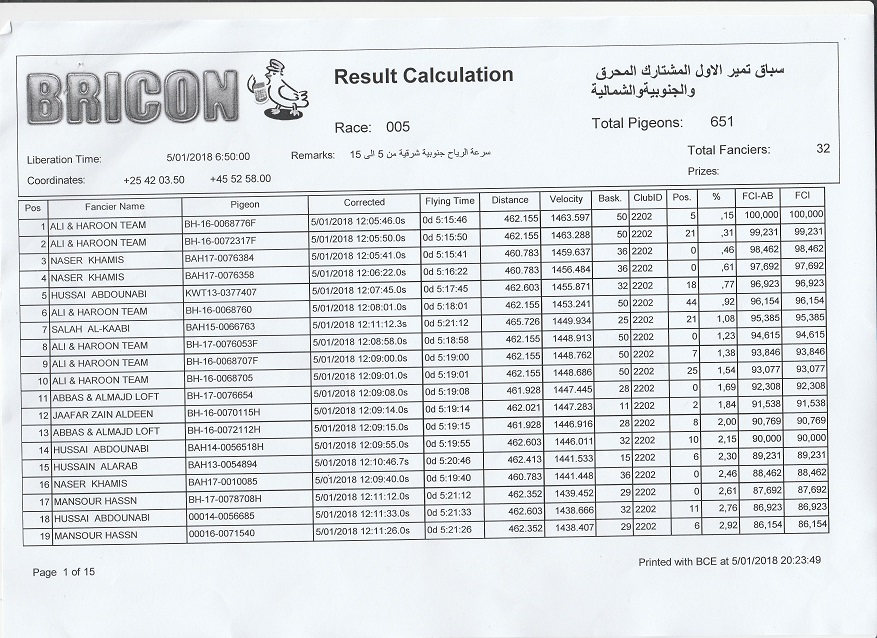 > منتديات الاتحاد الكويتي لسباق حمام الزاجل > أخبار الاتحادات والاندية > اخبار اتحاد مملكة البحرين لسباق حمام الزاجل > إليكم نتيجة السباق الخامس تمير مشتركة