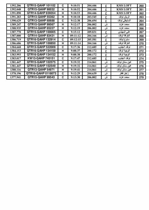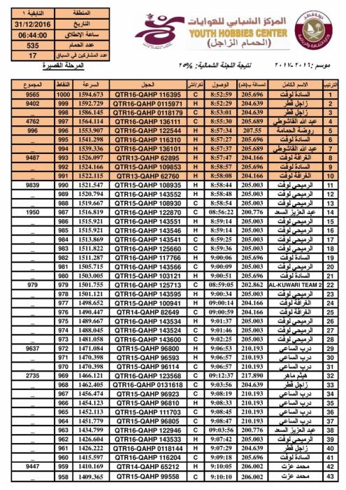 > منتديات الاتحاد الكويتي لسباق حمام الزاجل > أخبار الاتحادات والاندية > اخبار الجمعية القطرية لهواة حمام الزاجل > نتيجة سباق النايفية1 -210 كلم- لموسم 2016-2017
