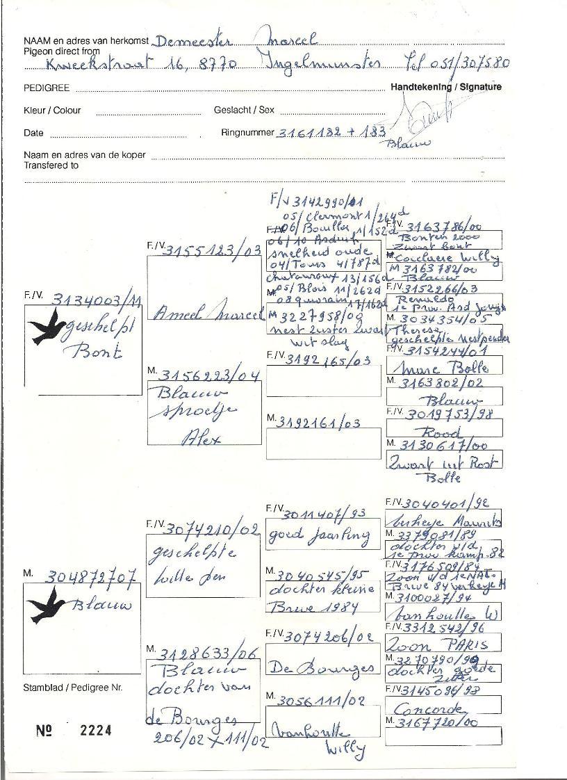 > منتديات الاتحاد الكويتي لسباق حمام الزاجل > منتدي الحمام > مزاد الحمام الزاجل / Pigeon Auction > مزاد Marcel Demeester