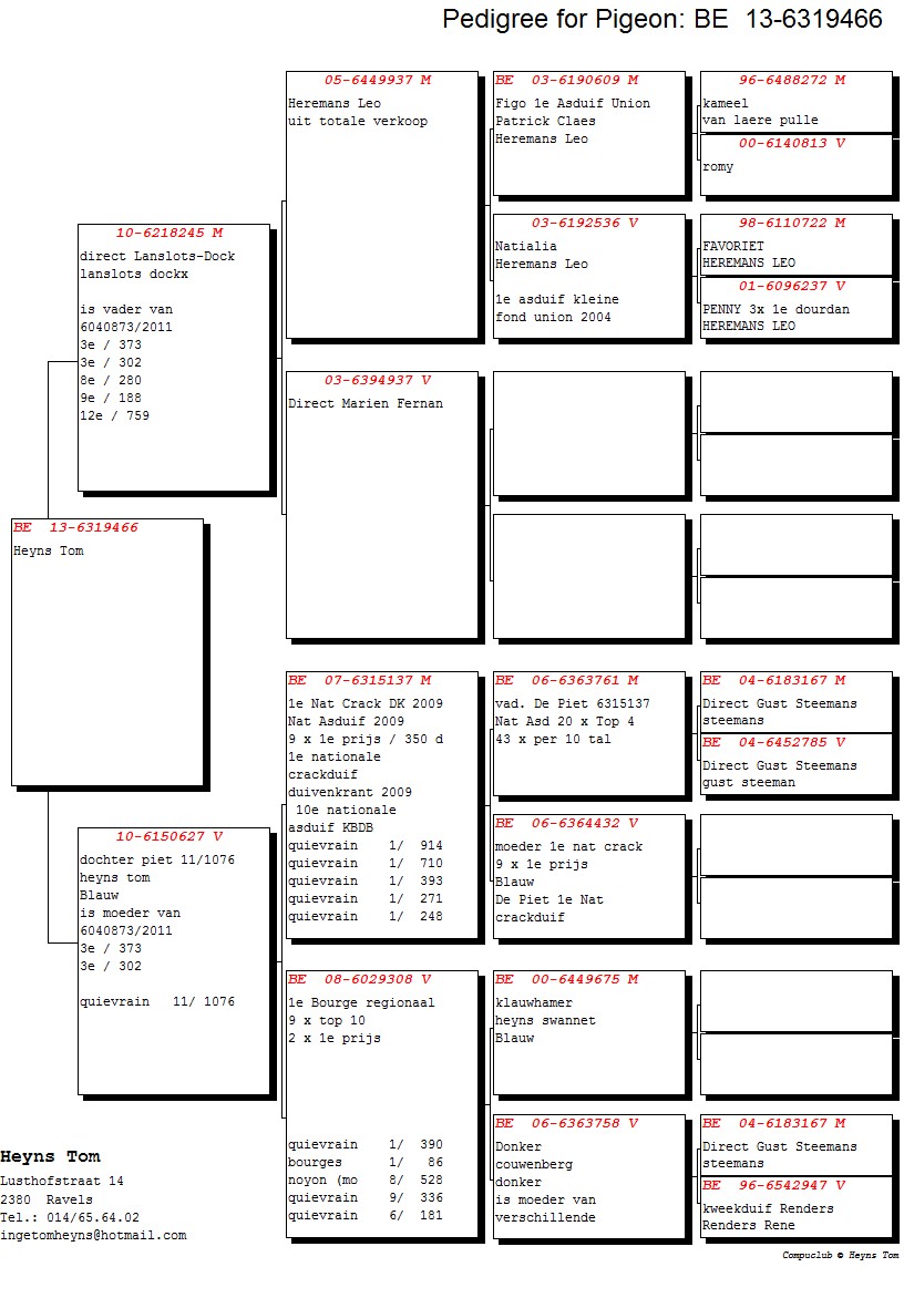بسم الله الرحمن الرحيم السلام عليكم ورحمة الله وبركاته مزاد حمام Tom Heyns من المنافسين الاقوياء بالمقاطعة التابع لها بسباقات السرعة وهو الان محط انظار الهواة الالمان والهولنديين يبدأ المزاد من تاريخ 6-2-2014 وينتهي بتاريخ 10-2-2014 الساعه 10,00 بالضبط مساءا بتوقيت دولة الكويت ولمدة خمسة ايام فقط ملاحظه في حالة وجود مساومه في الربع ساعه الاخيره سوف يمدد الوقت لربع ساعه اخرى للطير الذي تم الزود عليه فقط شروط المزاد فتح الباب 50 دينار والسومه 10 دنانير نرجوا من جميع الاعضاء الكرام التعريف بانفسهم عند السوم وذلك لحفظ حقوقهم وحقوق الاعضاء الاخرين وشكرا لتفهمكم مع تحيات ادارة المنتدى لاي استفسار عن يرجى الاتصال على الرقم التالي 66072572 _____________________________________ الرجاء من الاخوة الافاضل اللذين يساومون للمرة الاولى الاتصال بنا لتعريف بانفسهم حتى يتسنى لنا تفعيل السومه وشكرا ______________________________ جنس الحمام ليس اكيد 100 % انما اجتهاد ______________________________ البطل De Piet 9 x 1st 9 مرات اول الاول ناشيونال 2009 لاسرع طير من دايفن كرانت 1st National Crackduif-Snelheid 2009 Duivenkrant العاشر ناشيونال ايس بيجن للسرعة 2009 الاتحاد البلجيكي 10th National Asduif-Snelheid 2009 KBDB 9 مرات اول winner 9 x 1 Prize 20 مرة بالتوب 4 winner 20 x Top 4 43 جائزة بالعشرة بالمئه winner 43 x Prize per tiental ![]() ![]() نتائج البطل De Piet ![]() نتائج البطل 318-08 خليص البطل De Piet ![]() بعض نتائج البطل Tom Heyns ![]() ![]() ![]() ![]() ![]() ![]() ![]() ![]() ![]() ______________________________ الطير الاول ازرق B09-6290333 فايز بجناحه 15 - 21 - 35 - 35 - 87 اخ خليص للبطل De Piet 9 x 1st الاول ناشيونال 2009 لاسرع طير من دايفن كرانت 1st National Crackduif-Snelheid 2009 Duivenkrant العاشر ناشيونال ايس بيجن للسرعة 2009 الاتحاد البلجيكي 10th National Asduif-Snelheid 2009 KBDB 9 مرات اول winner 9 x 1 Prize 20 مرة بالتوب 4 winner 20 x Top 4 43 جائزة بالعشرة بالمئه winner 43 x Prize per tiental ![]() ![]() 1 - عبدالله السعيد 100 دينار 2 - عقيل كوت 110 دينار الطير الثاني ازرق B12-6147478 ام الطير عمة البطل De Piet فائز بجناحه انظر نتائج الطير بالاعلى 7 - 7 - 16 - 22 - 48 ![]() ![]() 1 - عقيل العجاج 50 دينار 2 - تامر تهامي 60 دينار الطير الثالث زرقة B13-6168323 حفيدة البطل De Piet ![]() ![]() 1 - عبدالله الشاعر 50 دينار الطير الرابع شذري B13-6311216 اخ لرقم 2 من الام ![]() ![]() 1 - تامر تهامي 50 دينار الطير الخامس ازرق B13-6319463 ابن مباشر للبطل 302 خليص البطل De Piet ![]() 1 - الطير السادس شذرية B13-6319465 اخت لابطال فائزين من جانب الاب والام ![]() ![]() 1 - احمد خليفه 60 دينار الطير السابع ازرق B13-6319466 حفيد البطل De Piet واخ خليص للبطل 873-11 3 - 3 - 8 - 9 - 12 ![]() ![]() 1 - تامر تهامي 50 دينار الطير الثامن شذرية B13-6319467 حفيدة البطل De Piet واخت خليصة للبطل 873-11 3 - 3 - 8 - 9 - 12 ![]() ![]() 1 - احمد الصعفاك 50 دينار 2 - ضياء الحمالي 60 دينار الطير التاسع شذري مسبق B13-6319468 ام الطير عمة البطل De Piet ![]() ![]() 1 - احمد الصعفاك 50 دينار موفقين بإذن الله ... ولكم مني أجمل تحية .