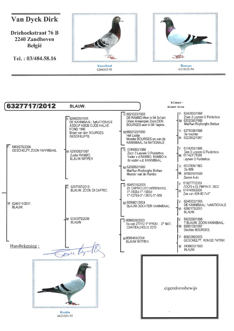 > منتديات الاتحاد الكويتي لسباق حمام الزاجل > منتدي الحمام > مزاد الحمام الزاجل / Pigeon Auction > مزاد Dirk van Dyck