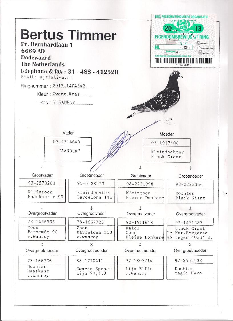 > منتديات الاتحاد الكويتي لسباق حمام الزاجل > منتدي الحمام > مزاد الحمام الزاجل / Pigeon Auction > مزاد Harold Zwiers & Van Wanroy الاخير