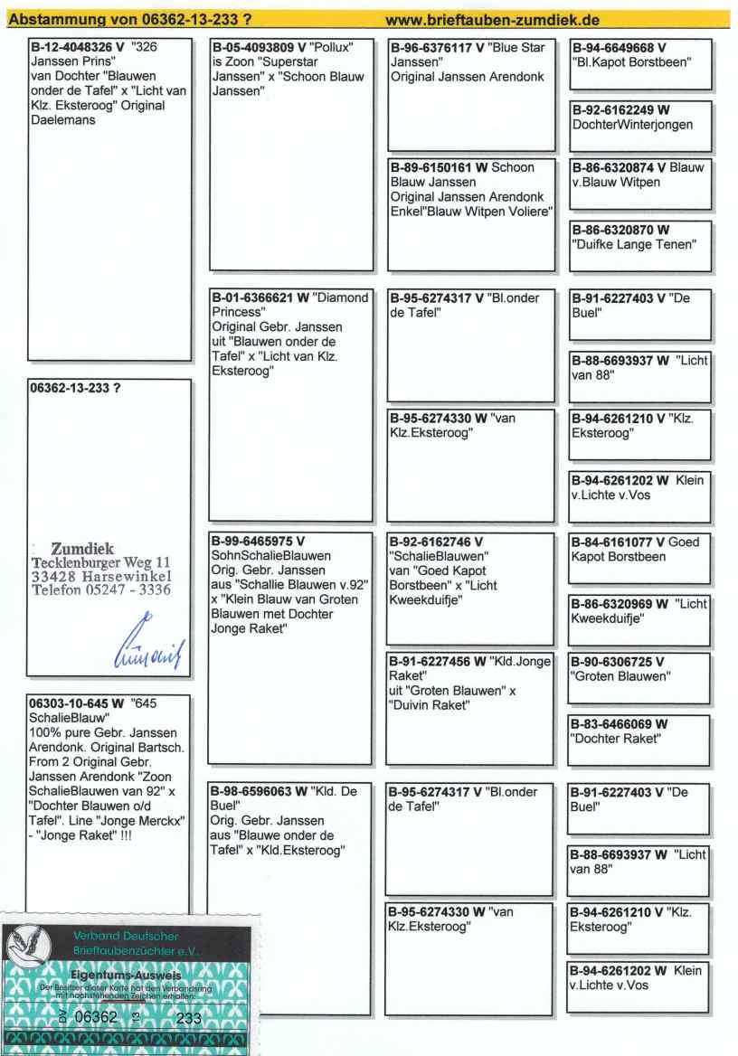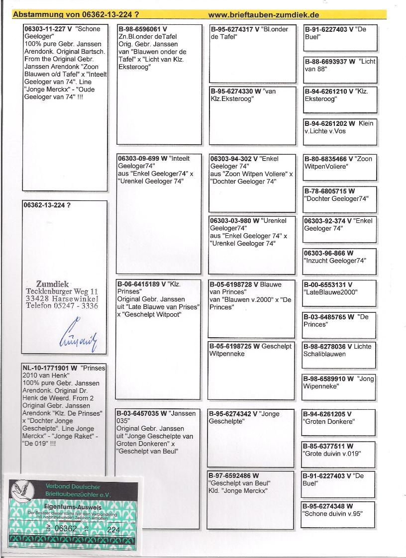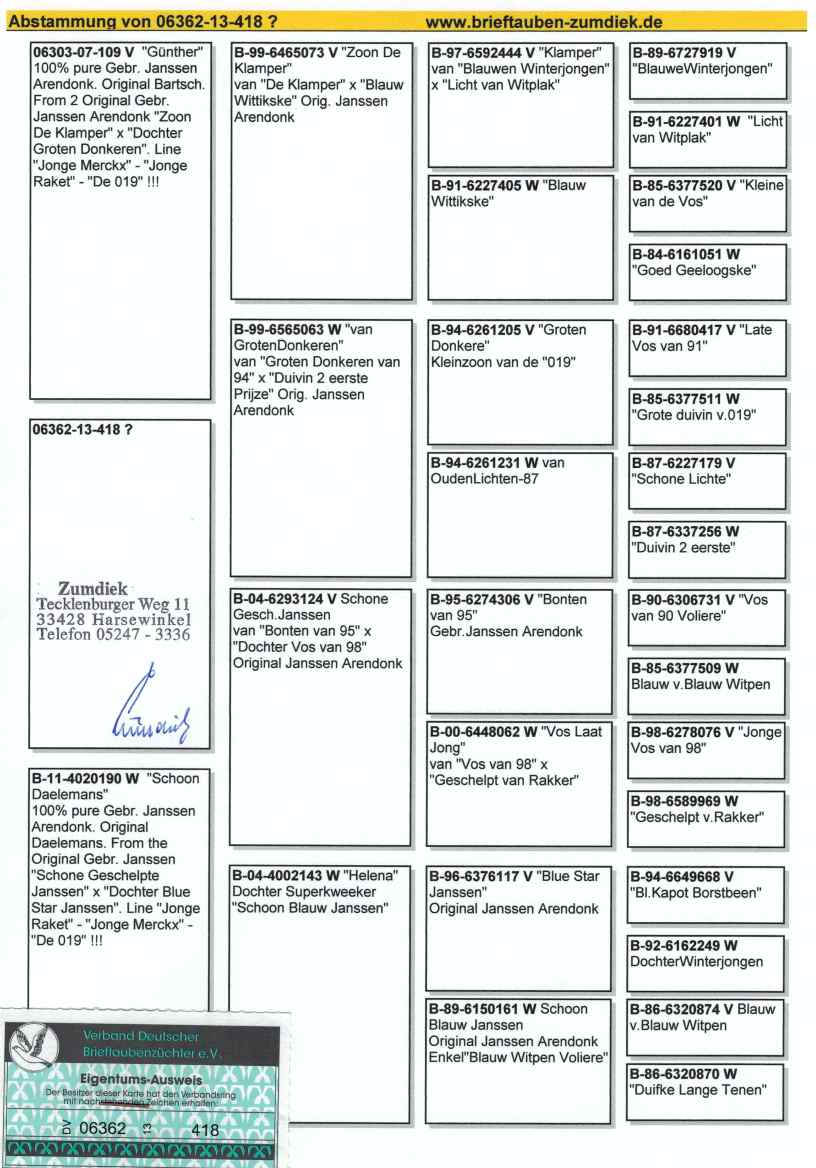 > منتديات الاتحاد الكويتي لسباق حمام الزاجل > منتدي الحمام > مزاد الحمام الزاجل / Pigeon Auction > مزاد Gebr Janssen Arendonk