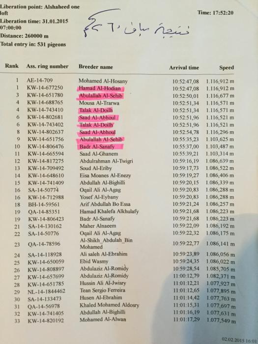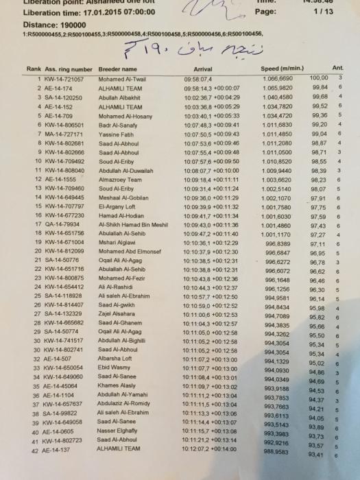 > منتديات الاتحاد الكويتي لسباق حمام الزاجل > منتدي اخبار السباقات > اخبار نقطة الشهيد فهد الاحمد لسباق حمام الزاجل > نتائج 190 و260 كم الرسميه لنقطة الشهيد العالمية الدورة الخامسة