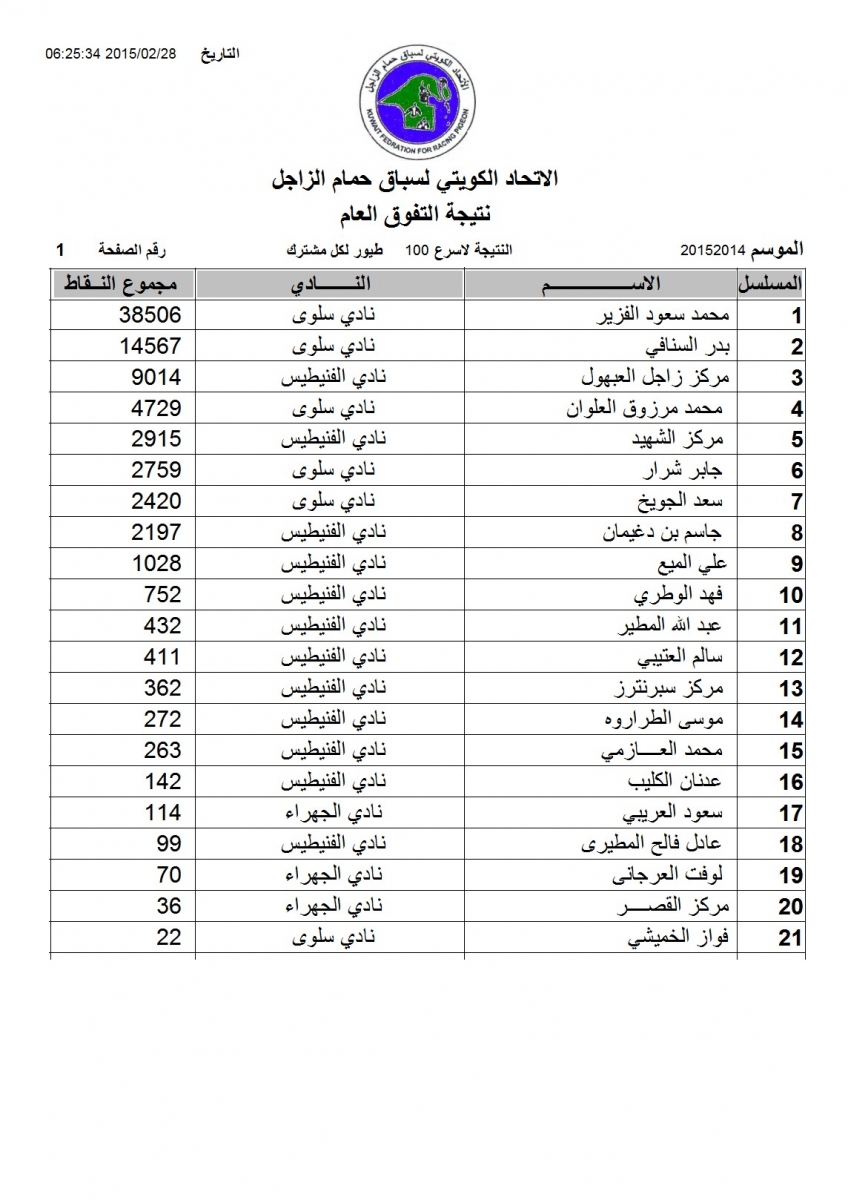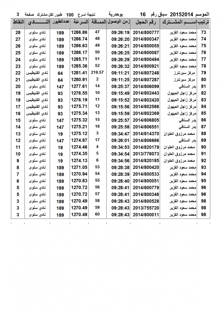 > منتديات الاتحاد الكويتي لسباق حمام الزاجل > منتدي اخبار السباقات > نتائج سباقات الاتحاد الكويتي / Race results > نتيجة الاتحاد الكويتى للسباق السادس عشر بوحدرية
