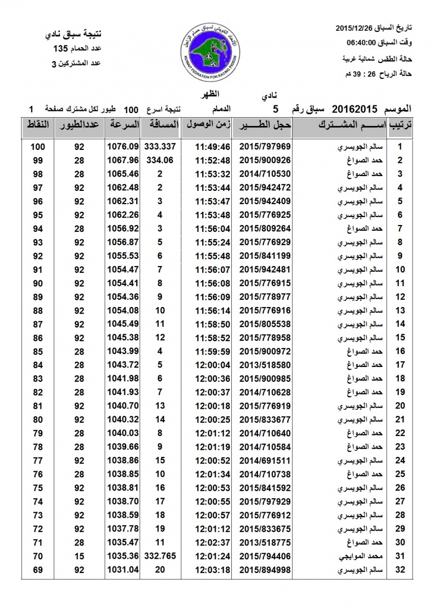 إليكم نتيجة السباق الخامس - الدمام لنادى الظهر