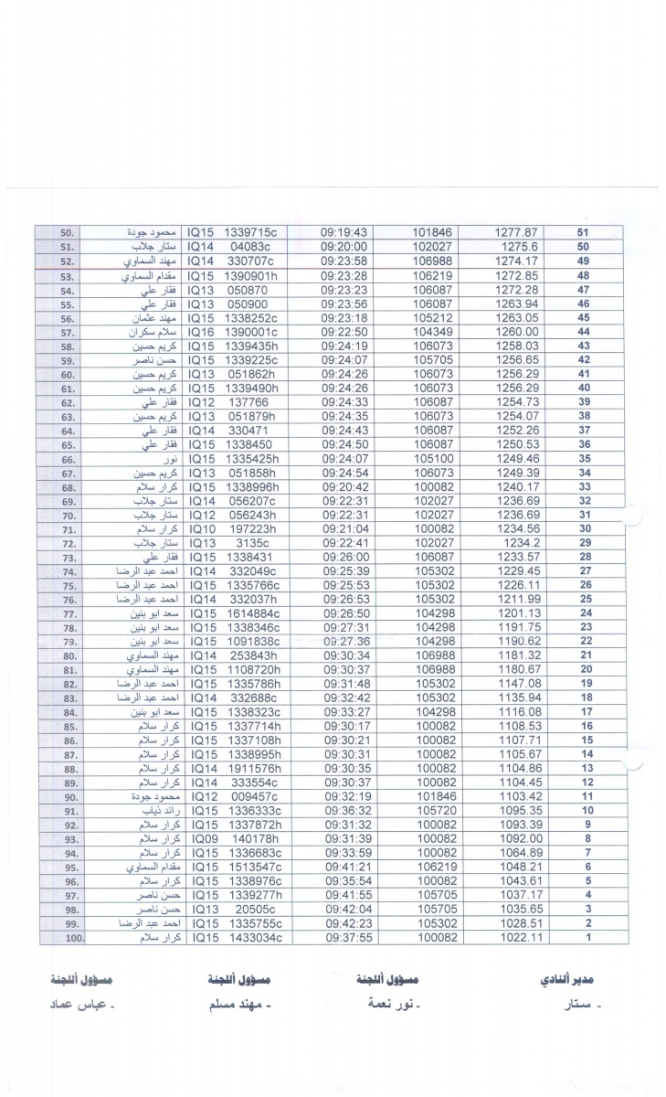 بسم الله الرحمن الرحيم نتائج سباق نادي السماوة المركزي مسافة 106 كيلو جوي سباق الالوان