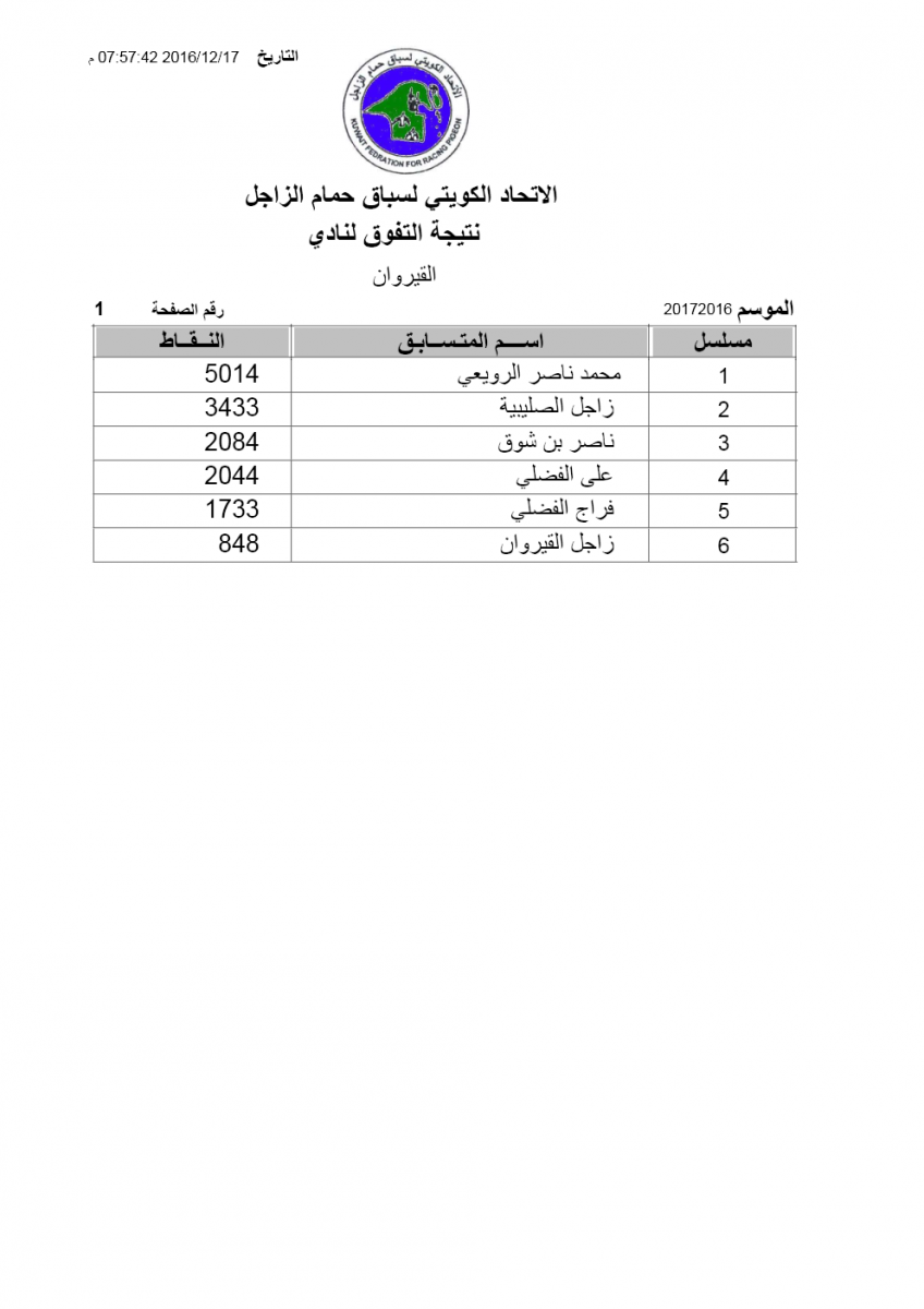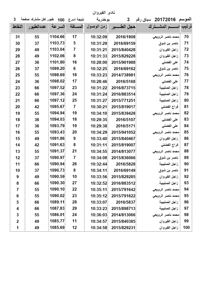 > منتديات الاتحاد الكويتي لسباق حمام الزاجل > منتدي اخبار السباقات > نتائج سباقات الاتحاد الكويتي / Race results > نتيجة السباق الثالث لنادي القيروان