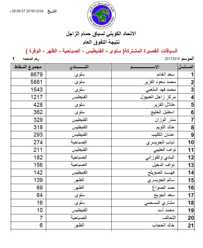 اليكم نتيجة الاتحاد الكويتي للسباق المشتركة ( الفنيطيس - سلوى - الصباحية - الظهر - الوفرة ) الجبيل 320 ك