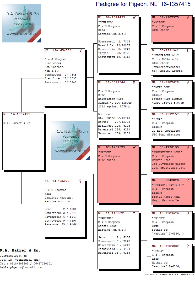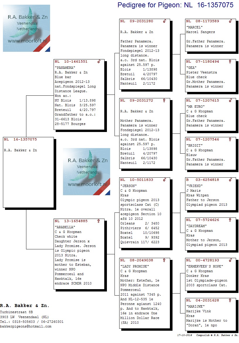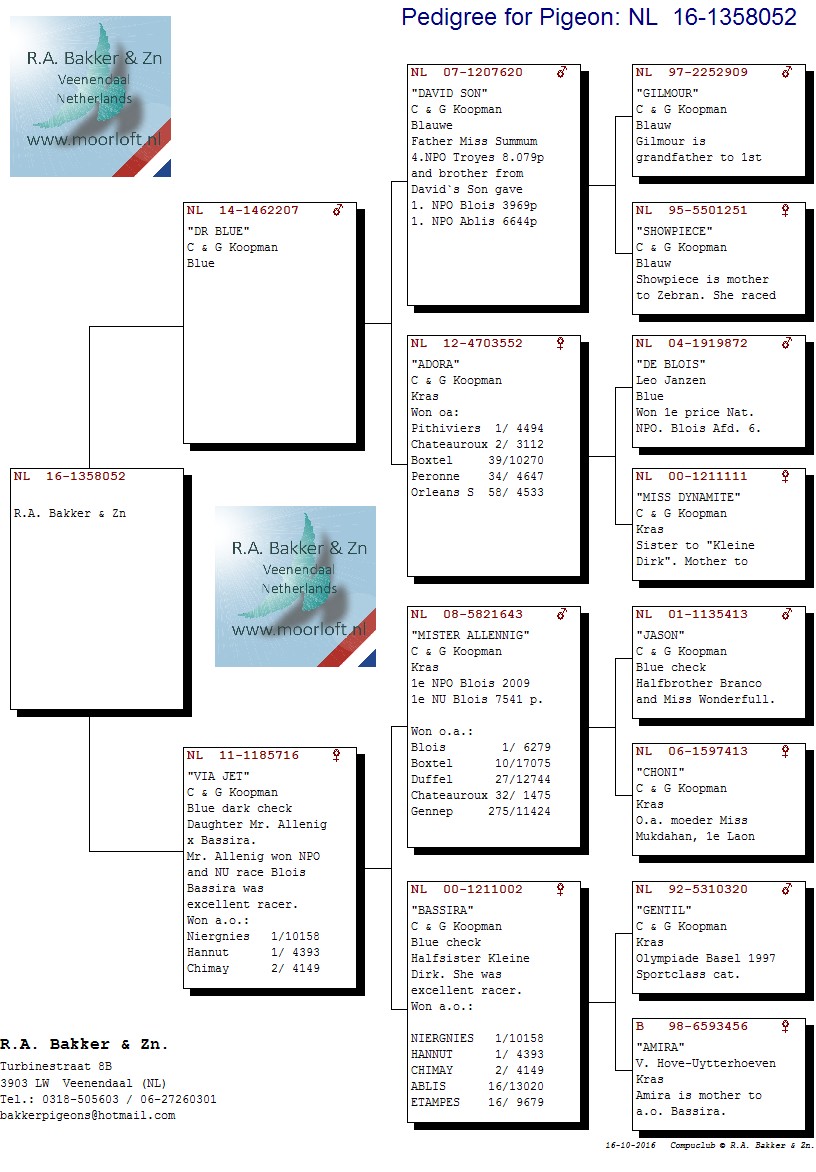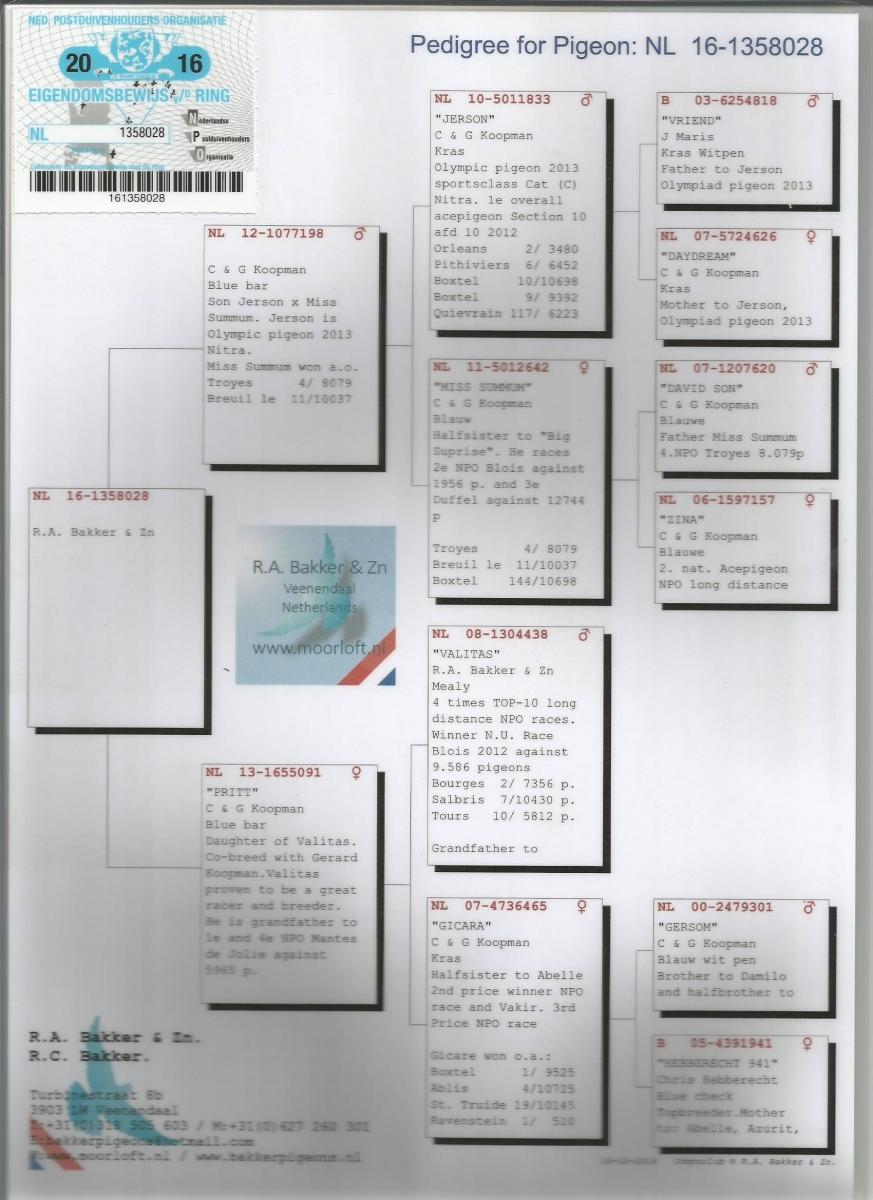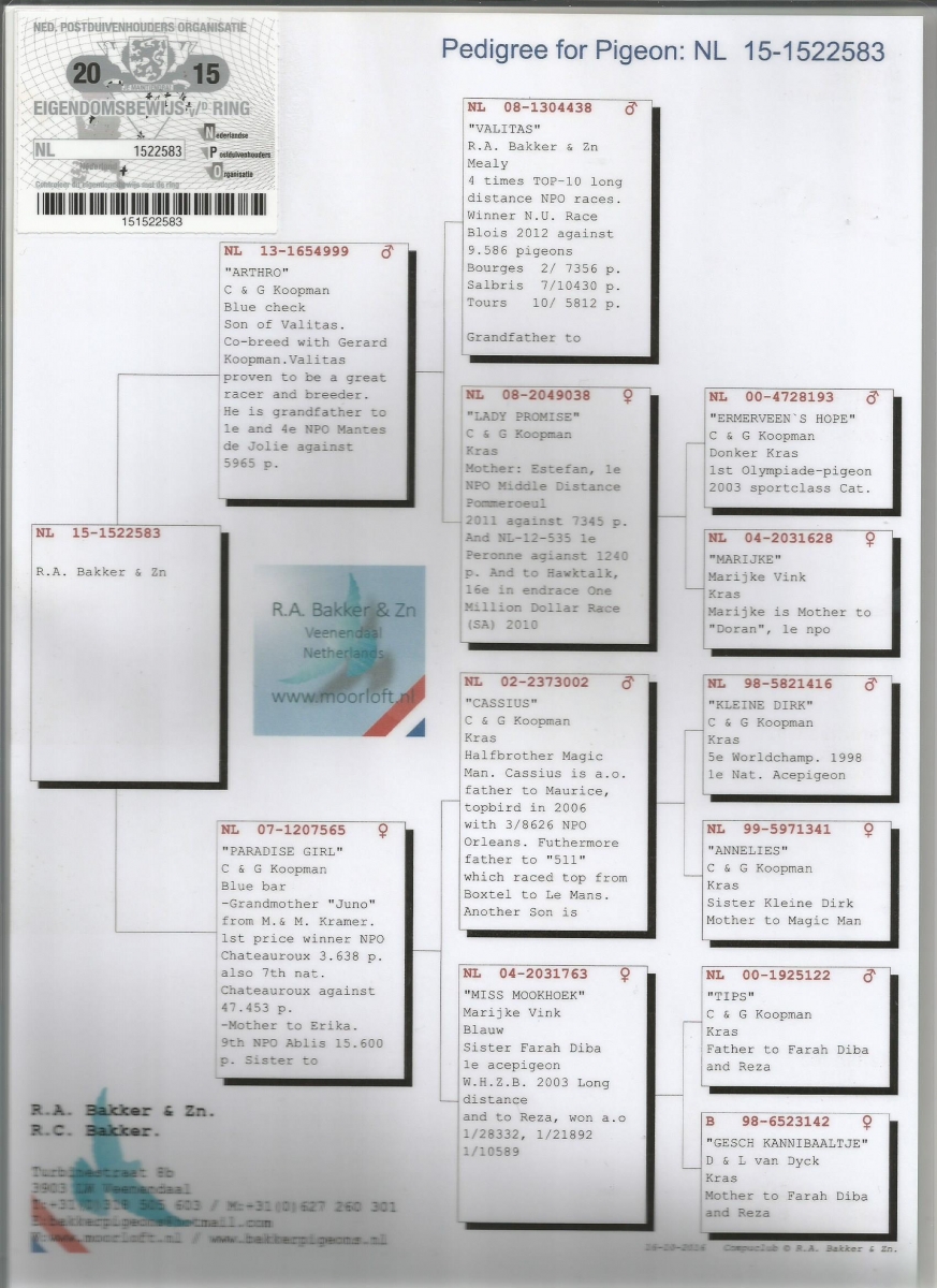 > منتديات الاتحاد الكويتي لسباق حمام الزاجل > منتدي الحمام > مزاد الحمام الزاجل / Pigeon Auction > مزاد R. A. Bakker & Zn