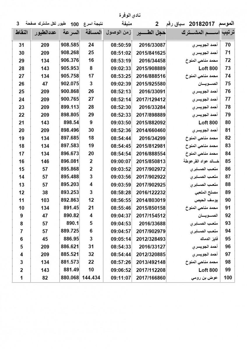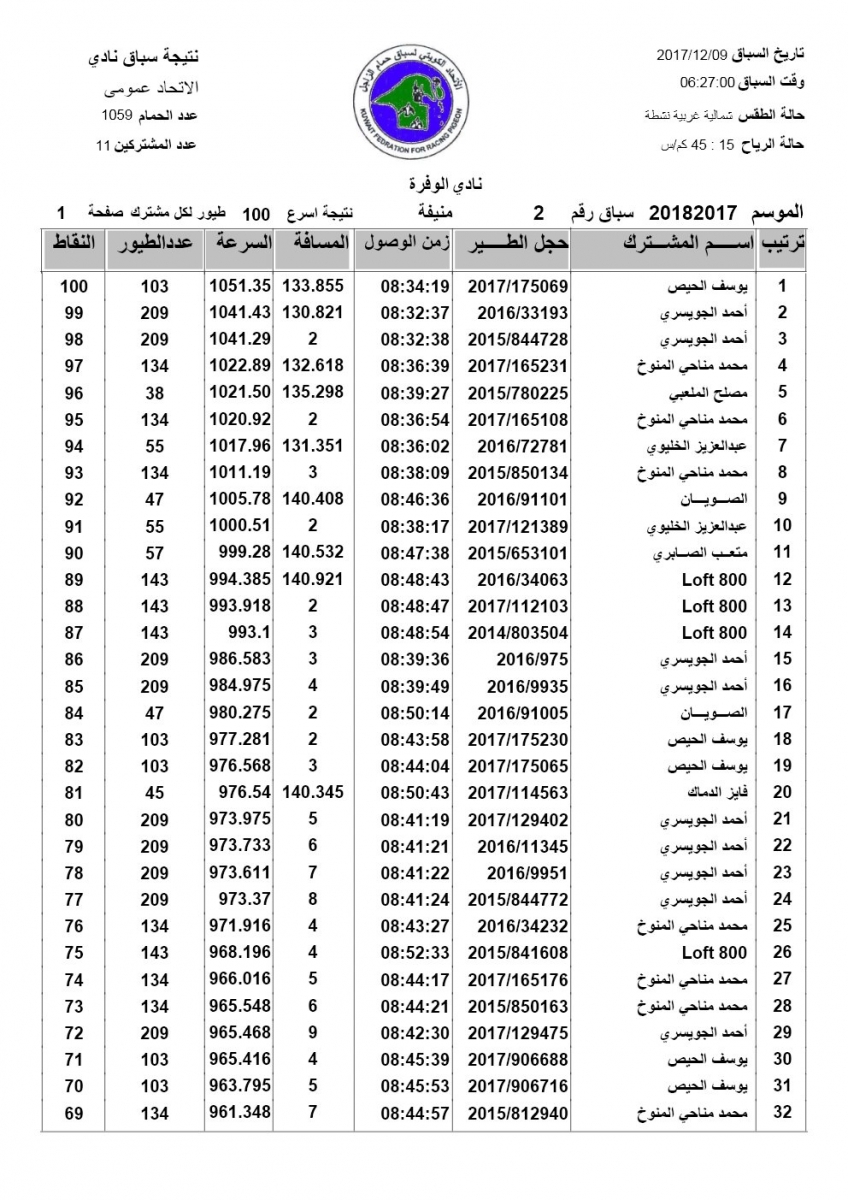 > منتديات الاتحاد الكويتي لسباق حمام الزاجل > منتدي اخبار السباقات > نتائج سباقات الاتحاد الكويتي / Race results > نتيجة السباق الثاني منيفة لنادي الوفرة