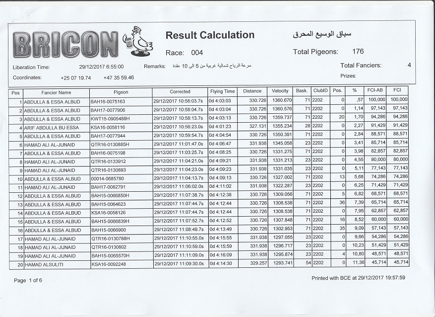 > منتديات الاتحاد الكويتي لسباق حمام الزاجل > أخبار الاتحادات والاندية > اخبار اتحاد مملكة البحرين لسباق حمام الزاجل > نتيجه سباق الوسيع لمسافة 330 كم/المحرق
