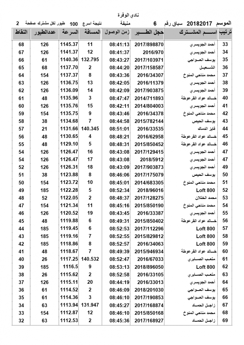 > منتديات الاتحاد الكويتي لسباق حمام الزاجل > منتدي اخبار السباقات > نتائج سباقات الاتحاد الكويتي / Race results > نتيجة السباق السادس- منيفة لنادى الوفرة