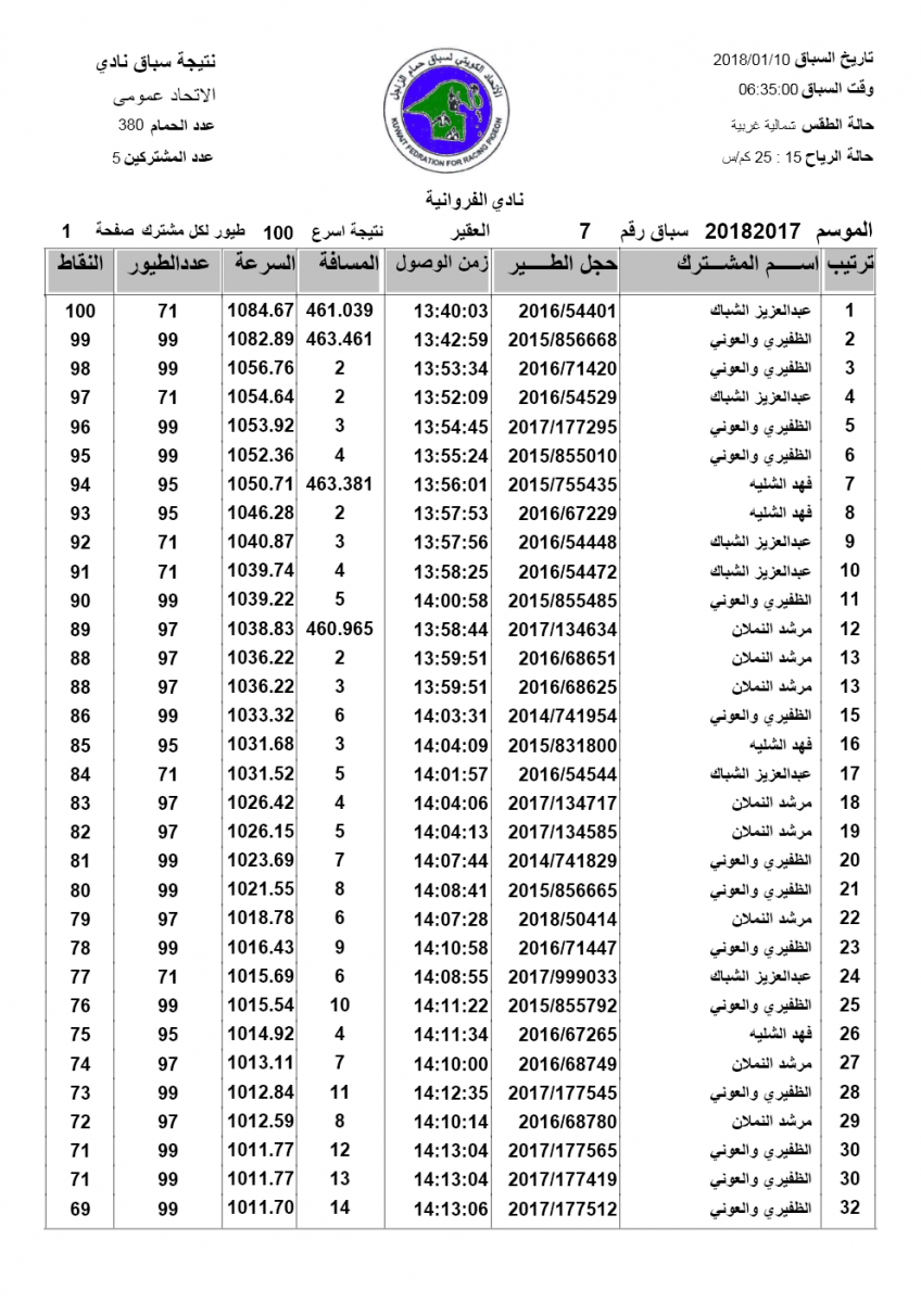 اخبار الاتحاد الكويتي لسباق الحمام الزاجل Kuwait union news