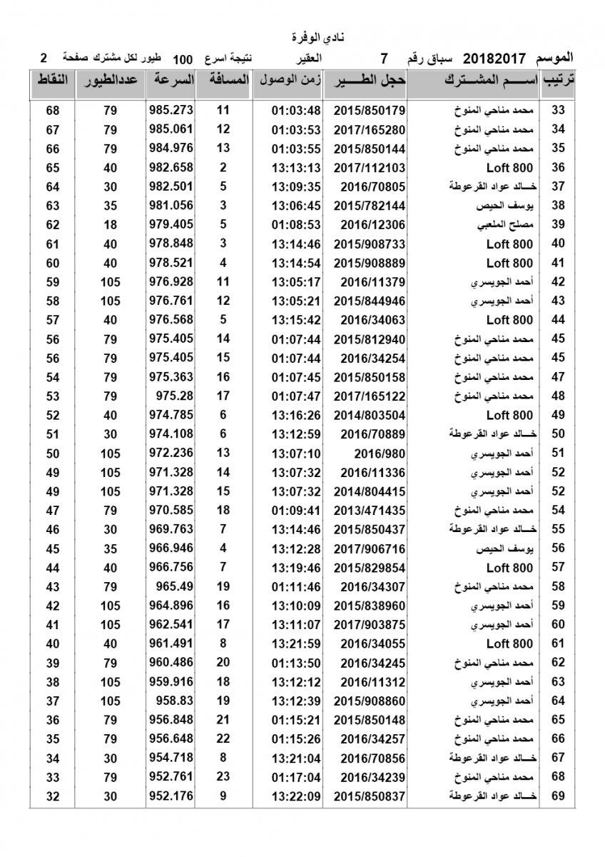 > منتديات الاتحاد الكويتي لسباق حمام الزاجل > منتدي اخبار السباقات > نتائج سباقات الاتحاد الكويتي / Race results > نتيجة السباق السابع وسط - العقير لنادى الوفرة