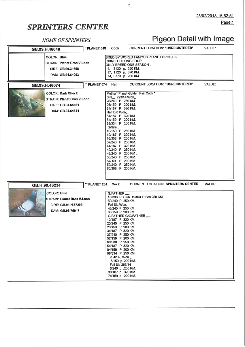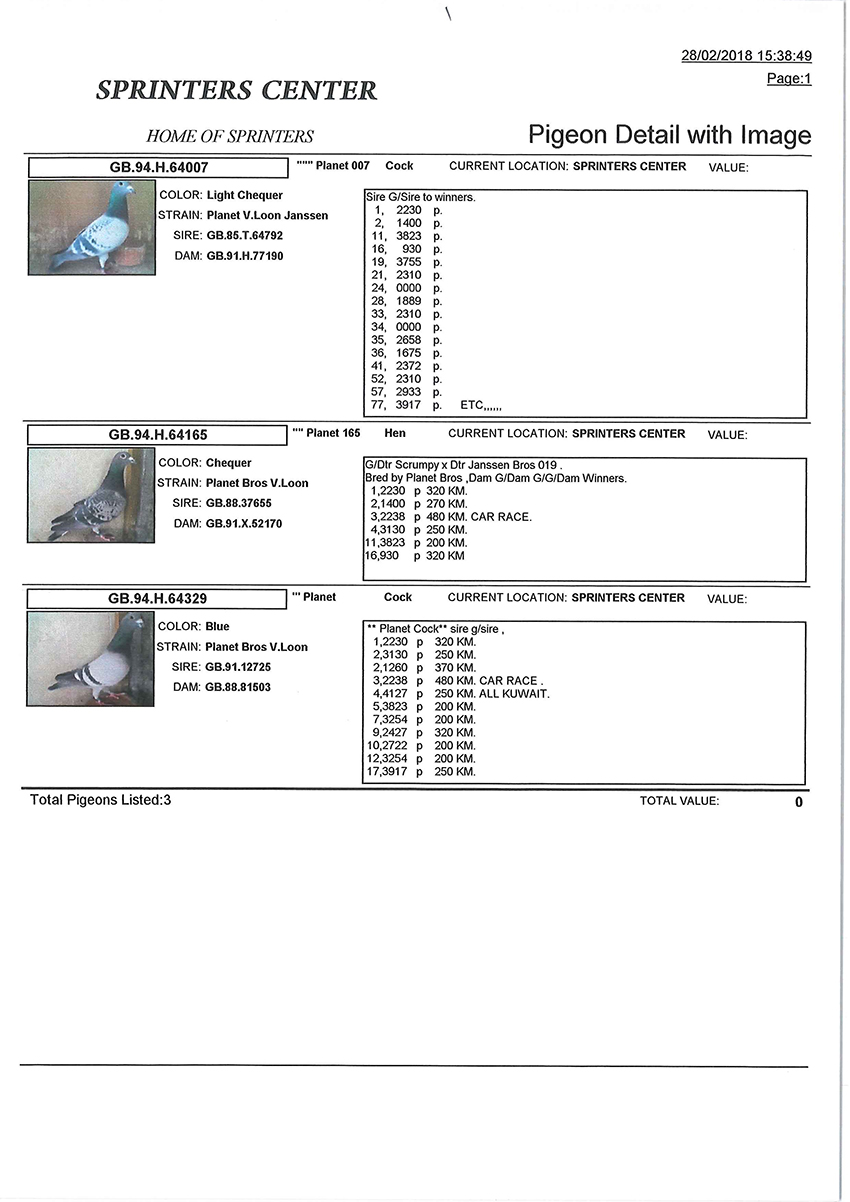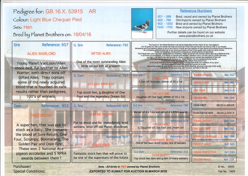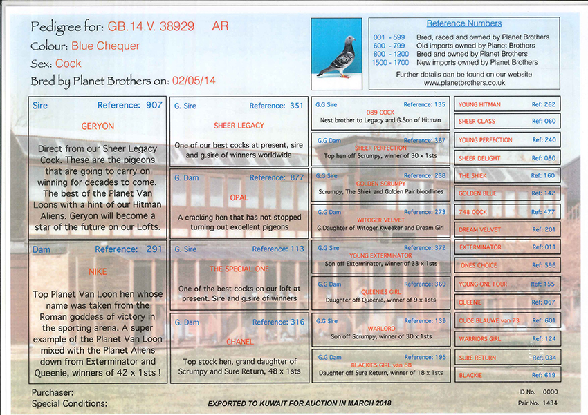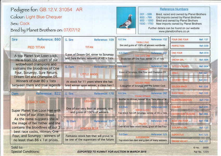 > منتديات الاتحاد الكويتي لسباق حمام الزاجل > منتدي الحمام > مزاد الحمام الزاجل / Pigeon Auction > مزاد Planet Brothers Van loon