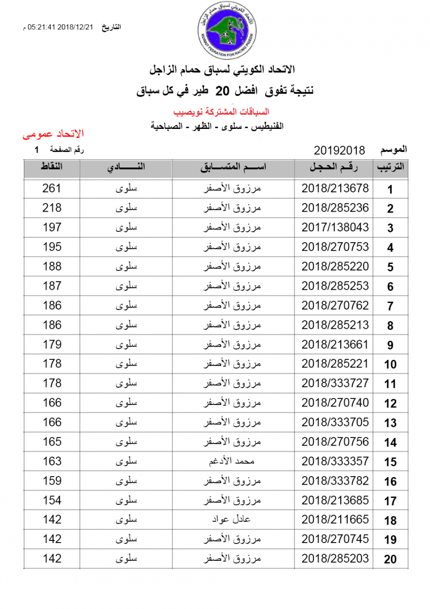 > منتديات الاتحاد الكويتي لسباق حمام الزاجل > منتدي اخبار السباقات > نتائج سباقات الاتحاد الكويتي / Race results > نتيجة السباق الثالث النويصيب مشتركة