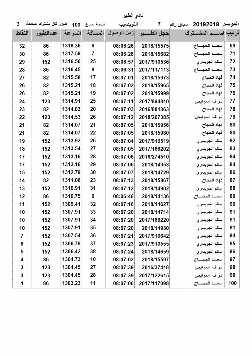 > منتديات الاتحاد الكويتي لسباق حمام الزاجل > منتدي اخبار السباقات > نتائج سباقات الاتحاد الكويتي / Race results > نتيجة السباق السابع النويصيب لنادي الظهر