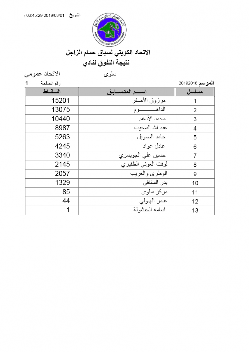 السلام عليكم ورحمة الله وبركاته إليكم نتيجة السباق الثالث عشر النويصيب لنادي سلوى مبروك الفوز ![]() ![]() ![]() ![]() ![]() |
