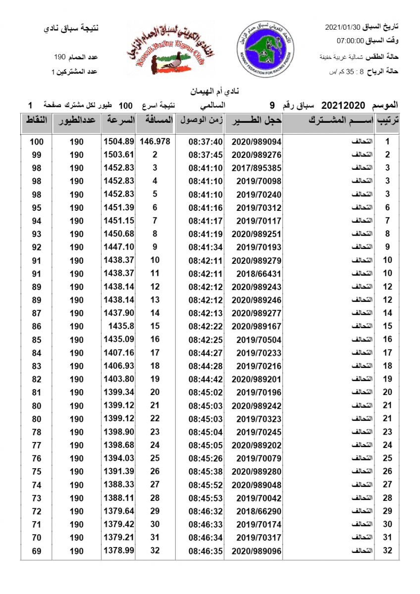 السلام عليكم ورحمة الله وبركاته إليكم نتيجة السباق التاسع - السالمي - لنادي أم الهيمان مبروك الفوز ![]() ![]() ![]() ![]() ![]() |