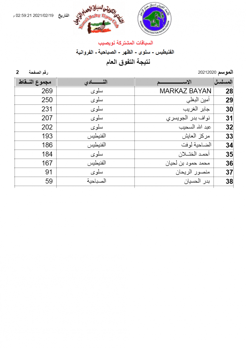 إليكم نتيجة السباق الثاني عشر - النويصيب للأندية المشتركة