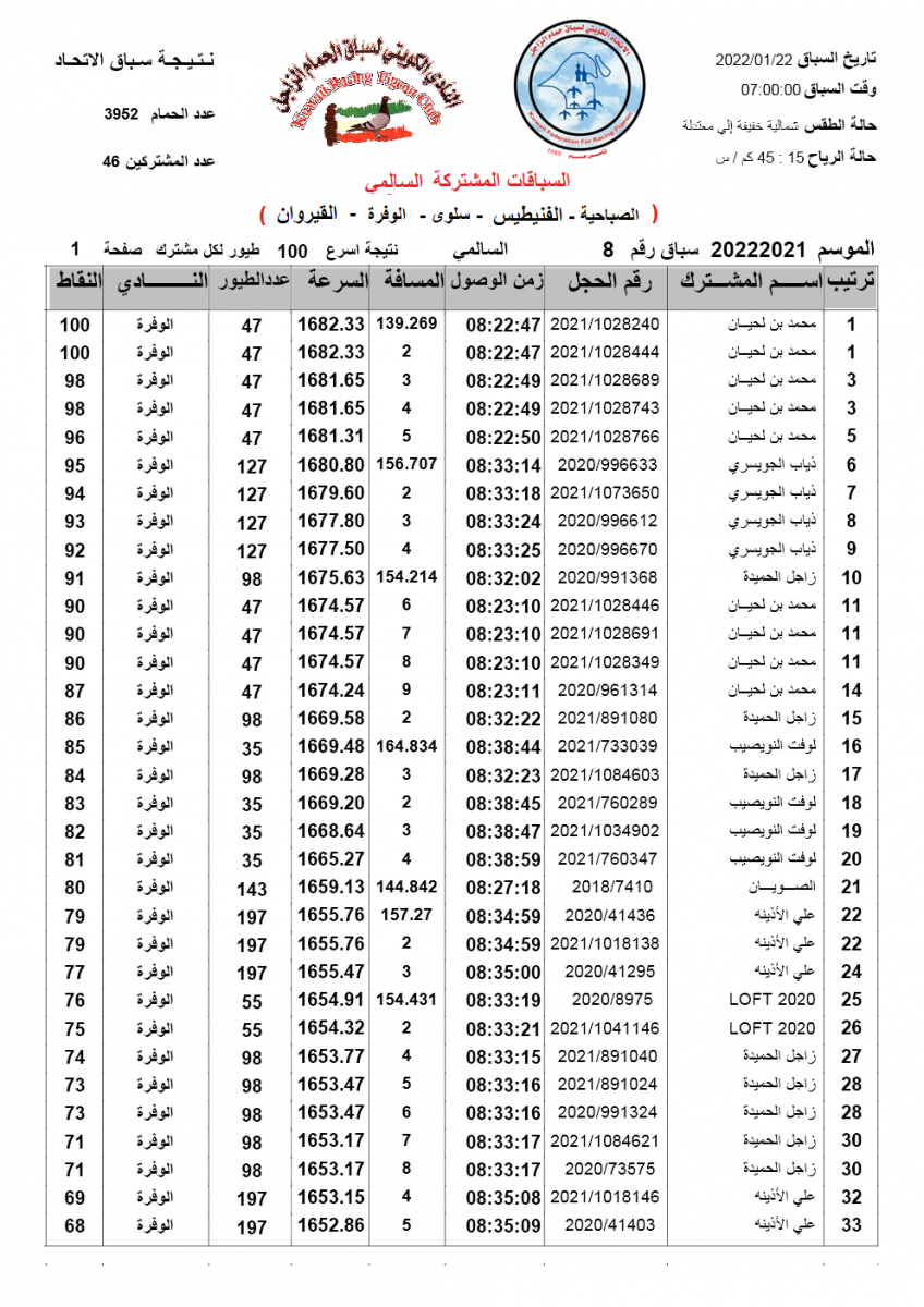 السلام عليكم ورحمة الله وبركاته إليكم نتيجة السباق 8 - السالمي - السباقات المشتركة مبروك الفوز ![]() ![]() ![]() ![]() ![]() ![]() |