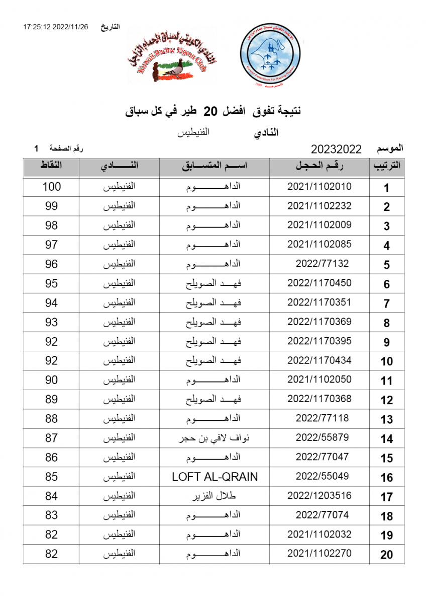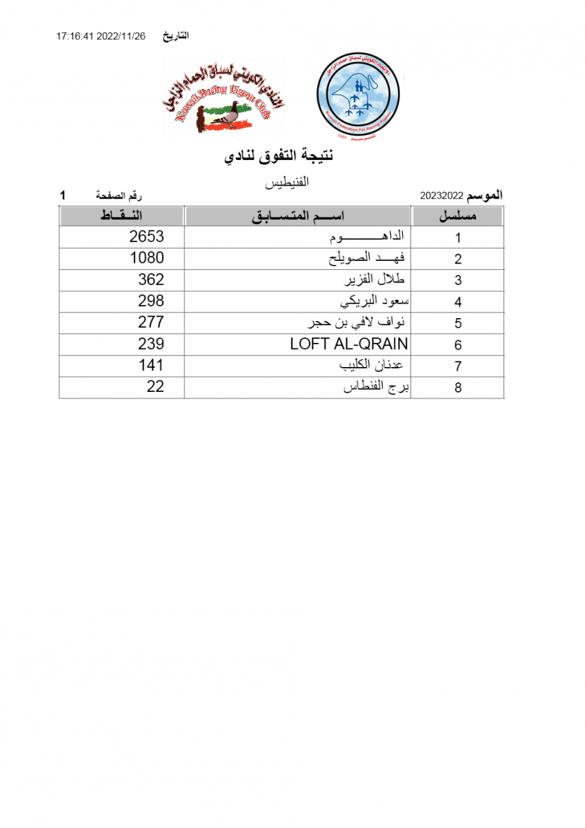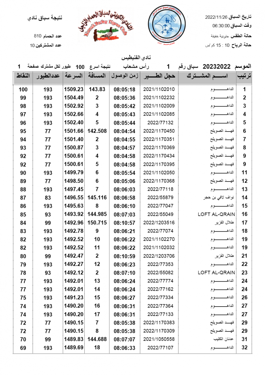 السلام عليكم ورحمة الله وبركاته إليكم نتيجة السباق الأول - راس مشعاب لنادى الفنيطيس مبروك الفوز ![]() ![]() ![]() ![]() ![]() |