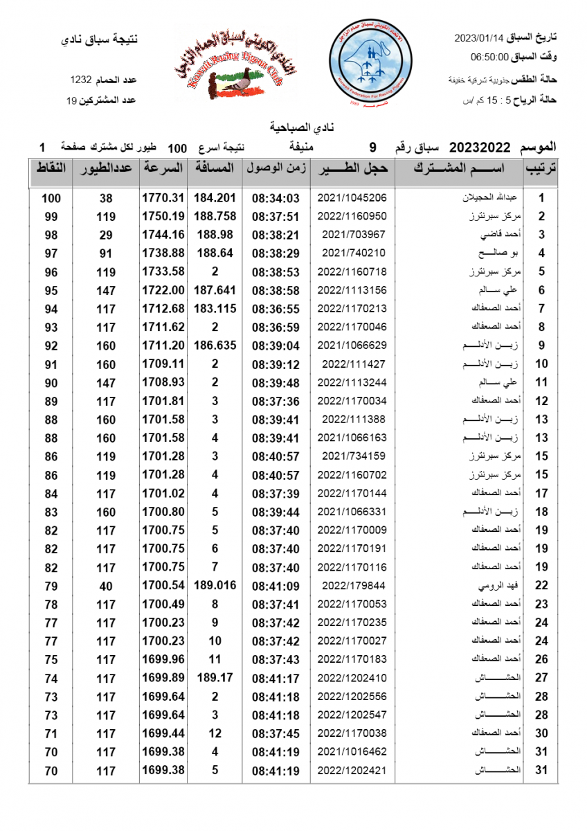 السلام عليكم ورحمة الله وبركاته إليكم نتيجة السباق التاسع - منيفة 200 ك لنادي الصباحية مبروك الفوز ![]() ![]() ![]() ![]() ![]() |