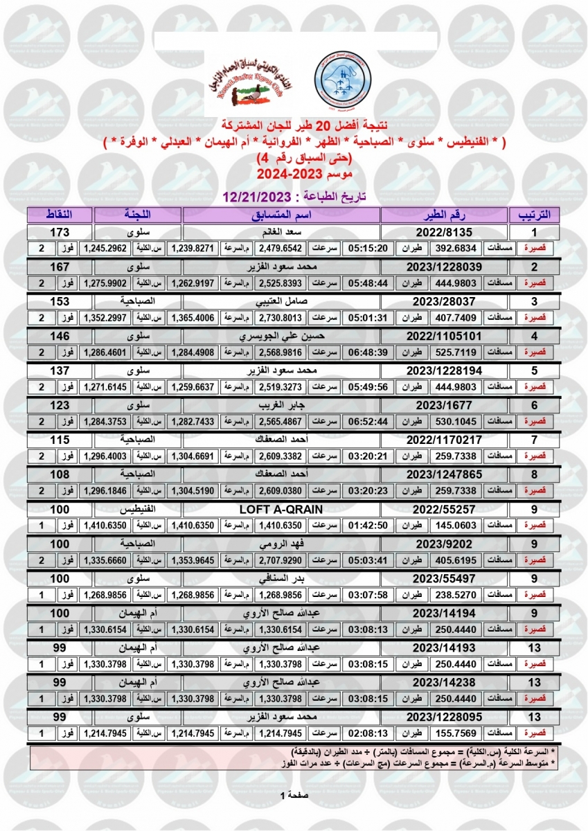 السلام عليكم ورحمة الله وبركاته إليكم نتيجة السباق الرابع - الجبيل 320 كم - للسباقات المشتركة مبروك الفوز ![]() ![]() ![]() ![]() ![]() ![]() ![]() |