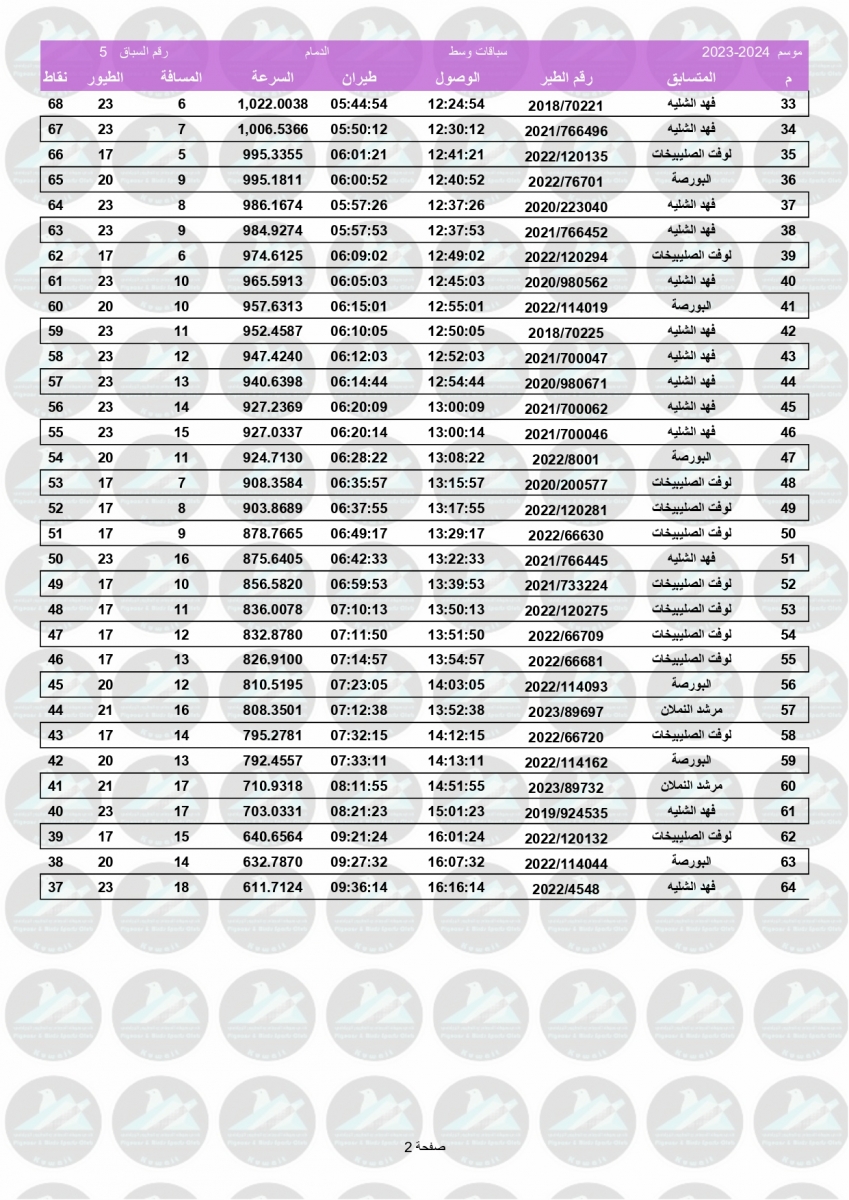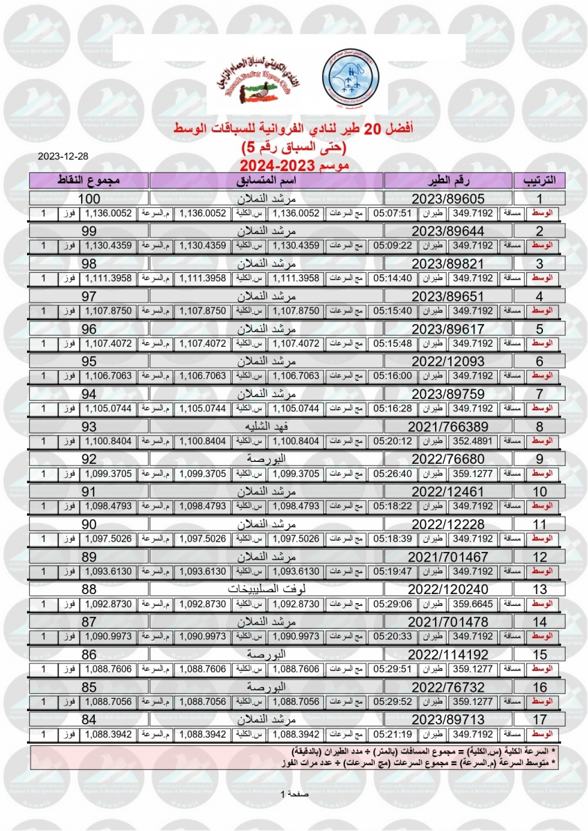 > منتديات الاتحاد الكويتي لسباق حمام الزاجل > منتدي اخبار السباقات > نتائج سباقات الاتحاد الكويتي / Race results > نتيجة السباق الخامس - الدمام 400 كم - لنادي الفروانية