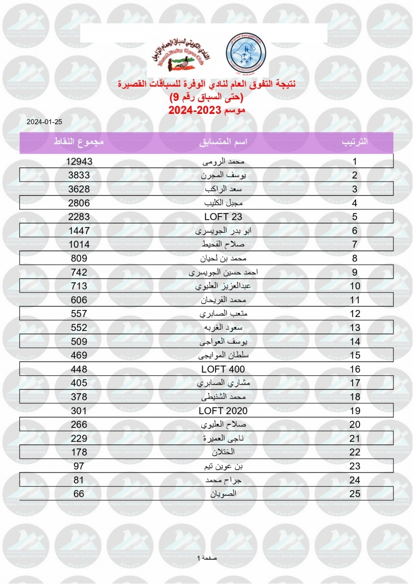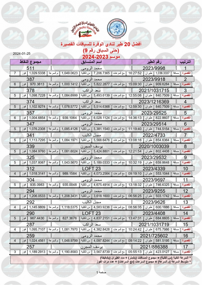 السلام عليكم ورحمة الله وبركاته إليكم نتيجة السباق التاسع - الجبيل 320 ك - لنادي الوفرة مبروك الفوز ![]() ![]() ![]() ![]() ![]() ![]() |
