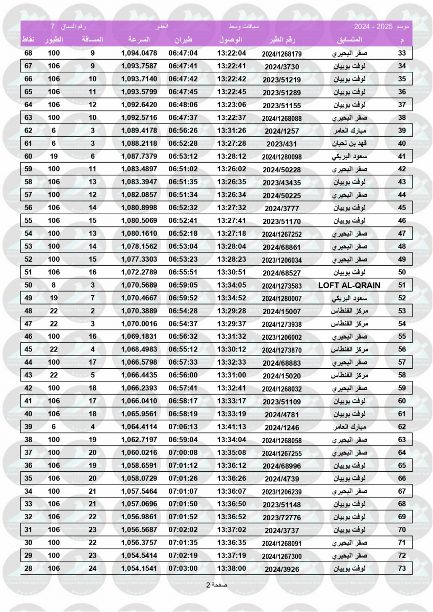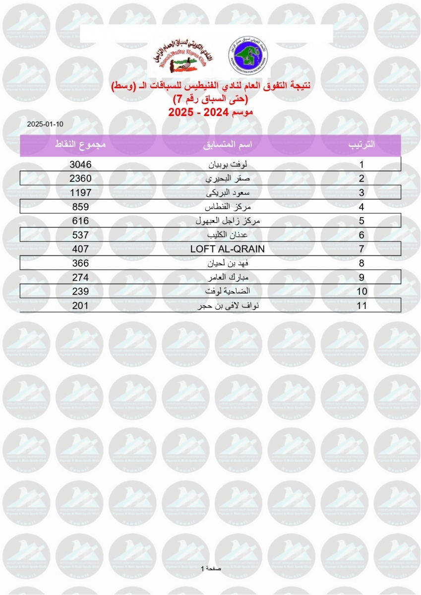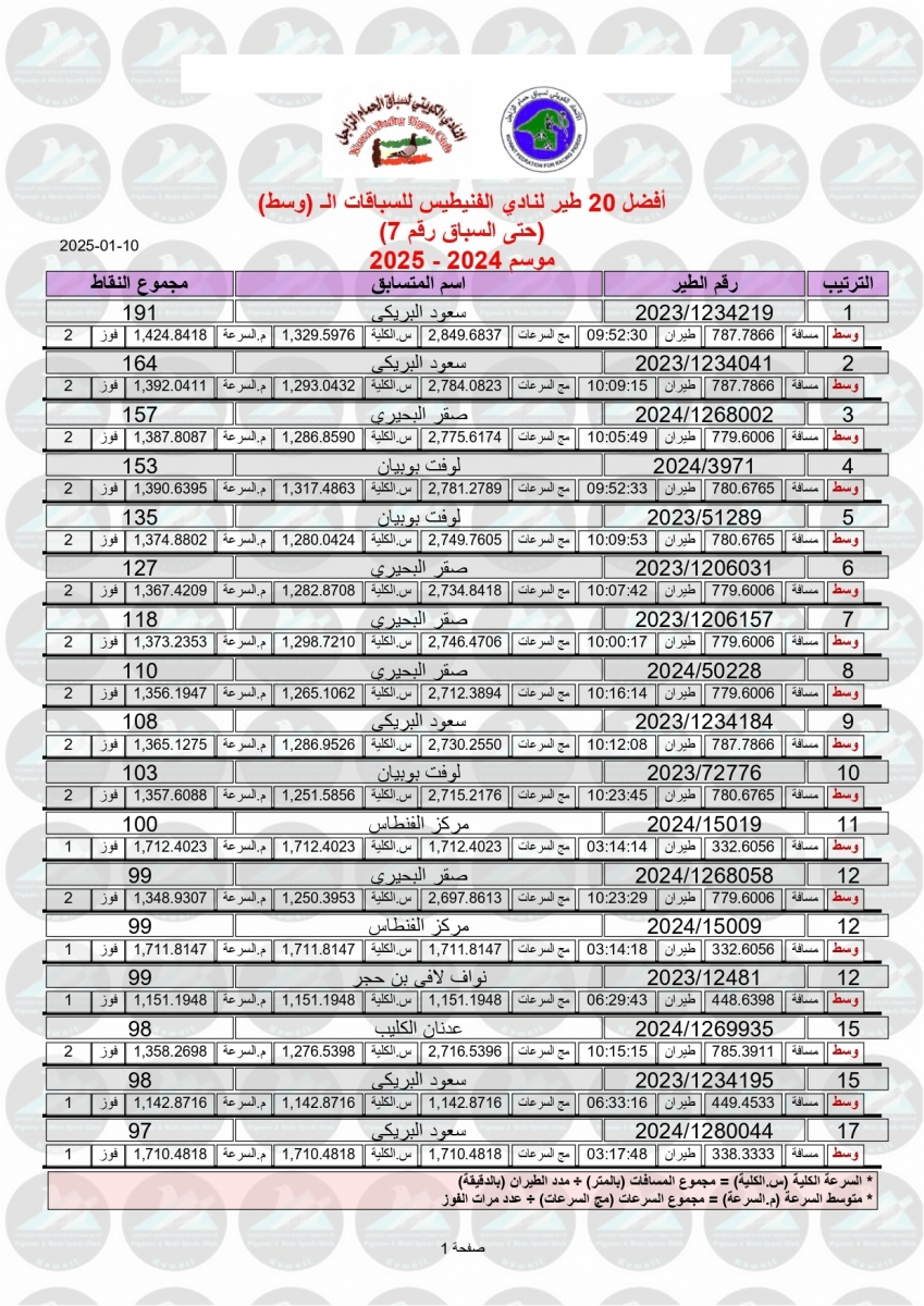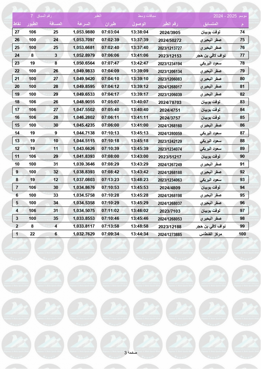 > منتديات الاتحاد الكويتي لسباق حمام الزاجل > منتدي اخبار السباقات > نتائج سباقات الاتحاد الكويتي / Race results > نتيجة السباق السابع - العقير 470 كم - لنادي الفنيطيس