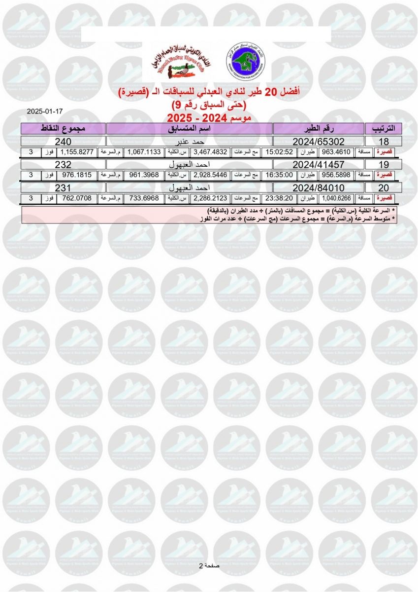 جميع الحقوق محفوظة لموقع ومنتدي الاتحاد الكويتي لسباق حمام الزاجل