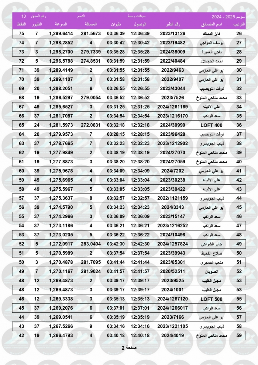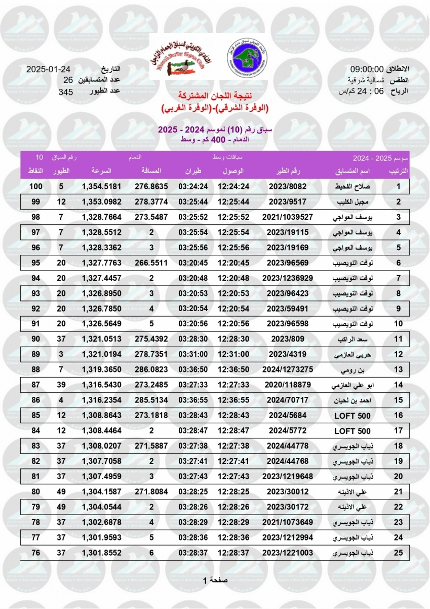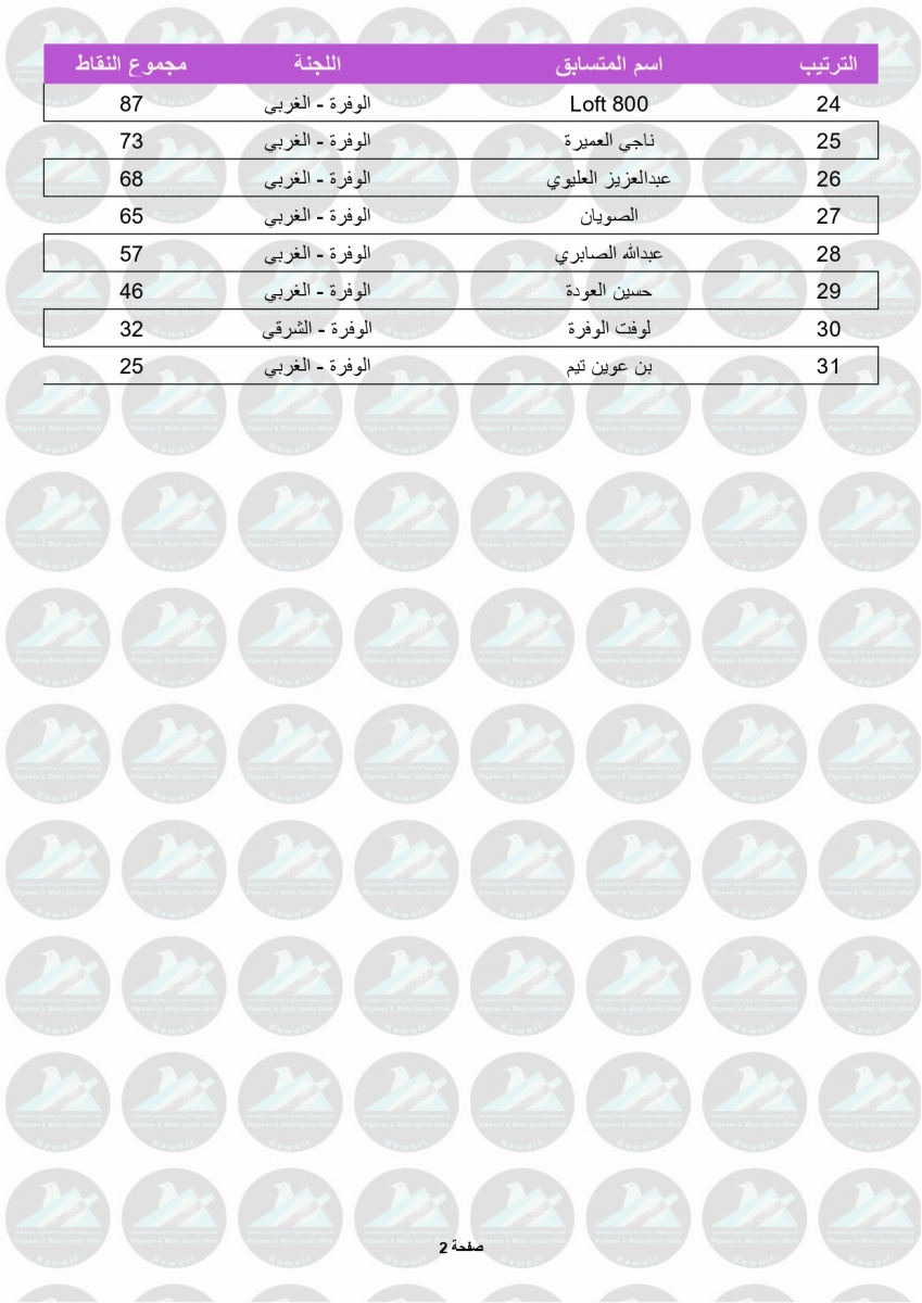 > منتديات الاتحاد الكويتي لسباق حمام الزاجل > منتدي اخبار السباقات > نتائج سباقات الاتحاد الكويتي / Race results > نتيجة السباق الحادي عشر - بو حدريه 250 كم - نادي الوفرة مشترك شرقي وغربي