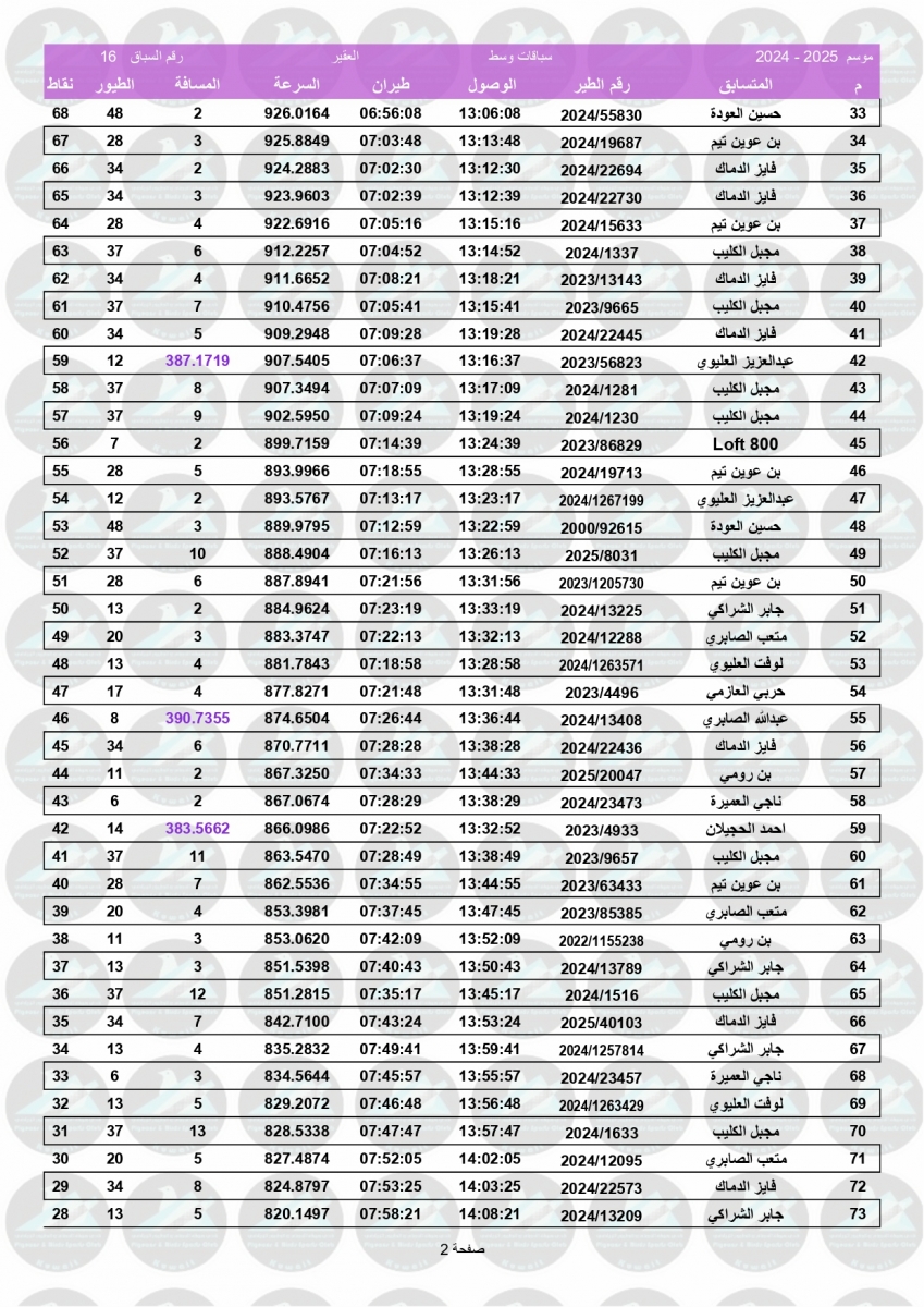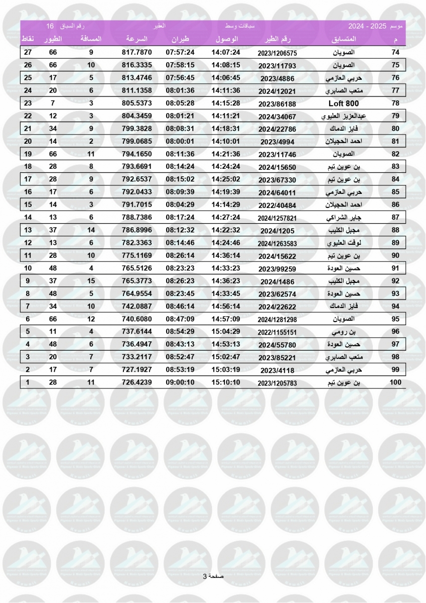> منتديات الاتحاد الكويتي لسباق حمام الزاجل > منتدي اخبار السباقات > نتائج سباقات الاتحاد الكويتي / Race results > نتيجة السباق السادس عشر - العقير 470 كم - نادي الوفرة غربي