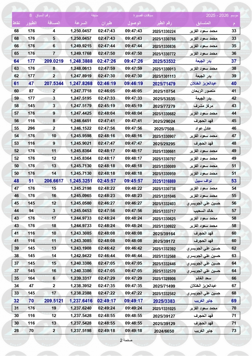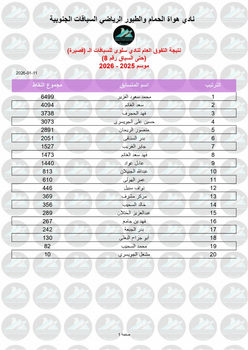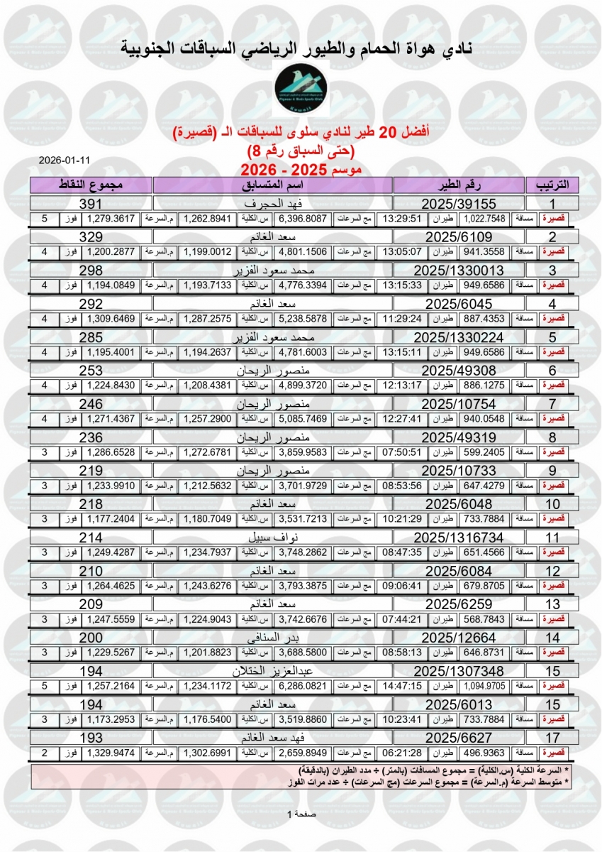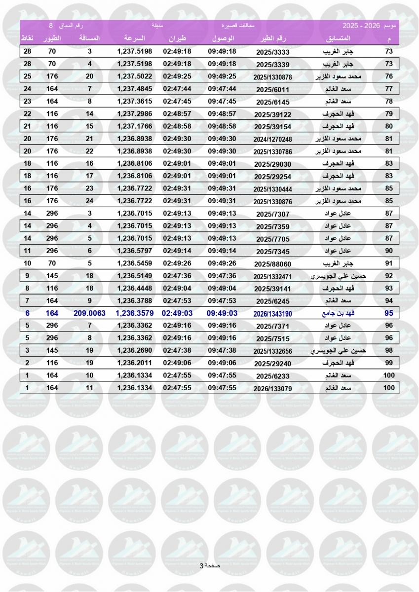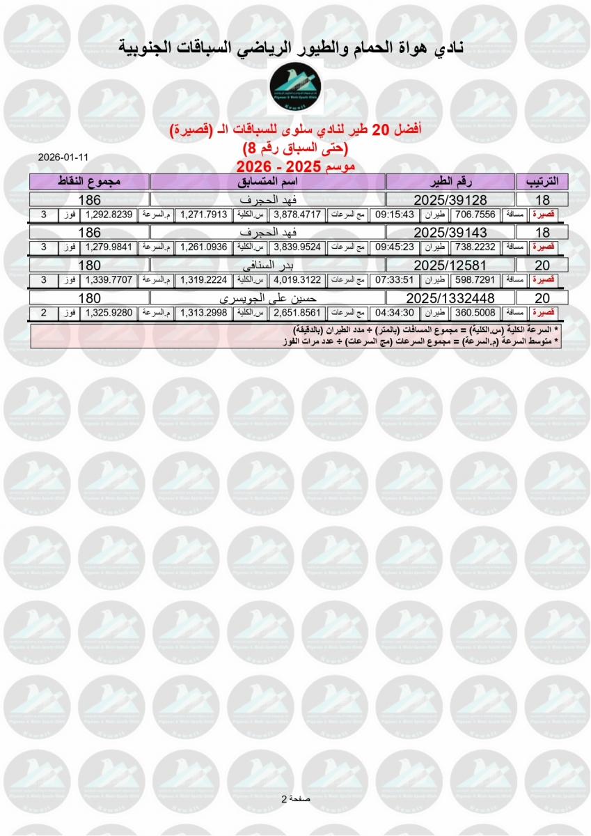 السلام عليكم ورحمة الله وبركاته إليكم نتيجة السباق الثامن - منيفة 200 كم - لنادي سلوى مبروك الفوز ![]() ![]() ![]() ![]() ![]() ![]() |