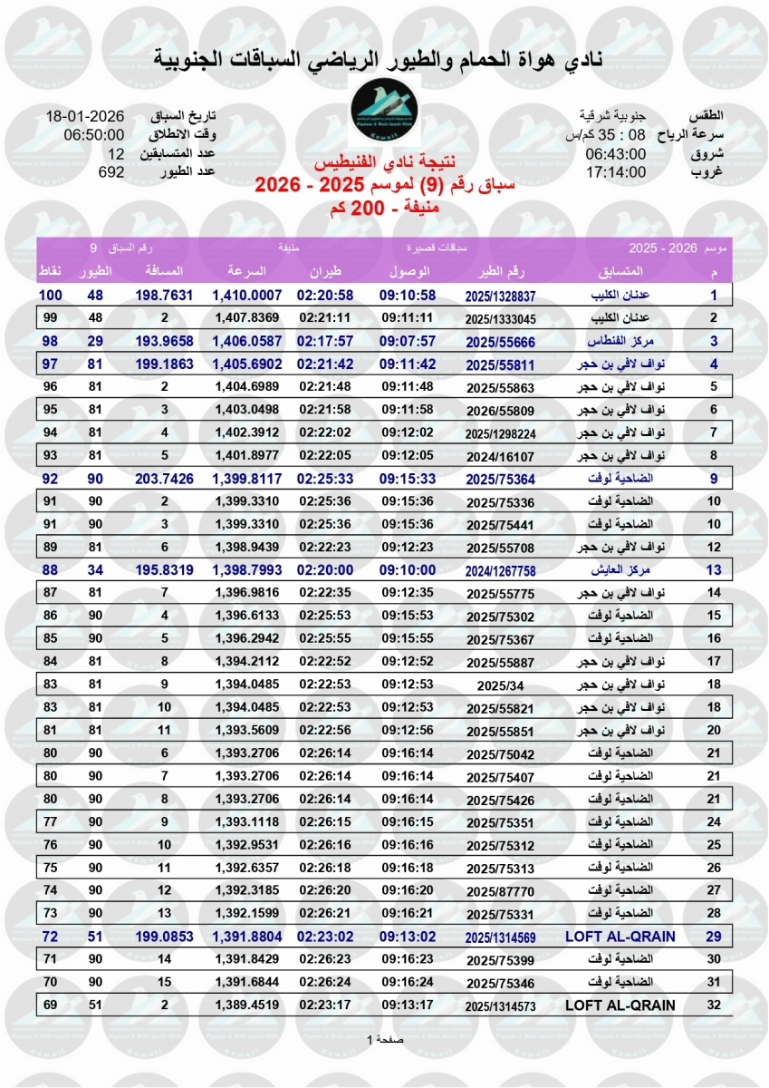 السلام عليكم ورحمة الله وبركاته إليكم نتيجة السباق التاسع - منيفة 200 كم لنادي الفنيطيس مبروك الفوز ![]() ![]() ![]() ![]() ![]() ![]() |