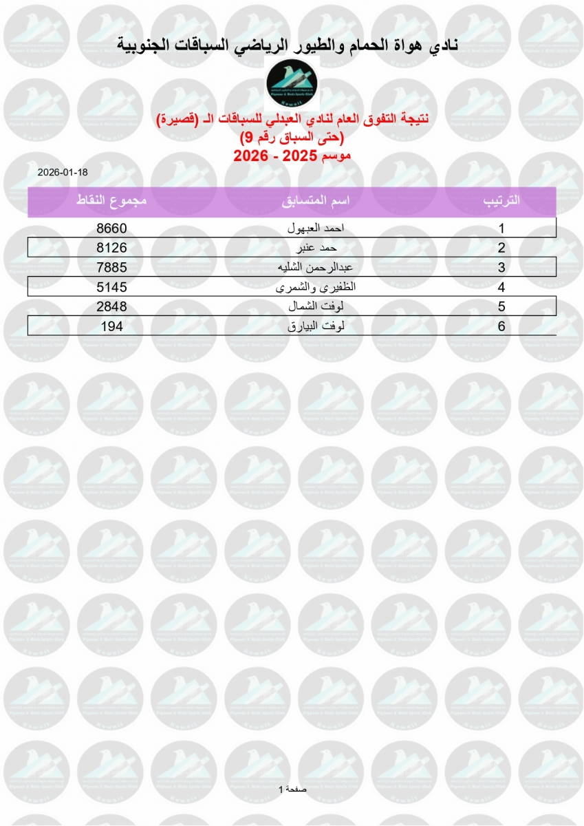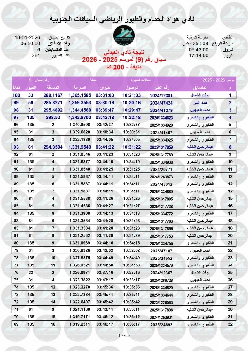 السلام عليكم ورحمة الله وبركاته إليكم نتيجة السباق التاسع - منيفة 200 كم لنادي العبدلي مبروك الفوز ![]() ![]() ![]() ![]() ![]() ![]() |