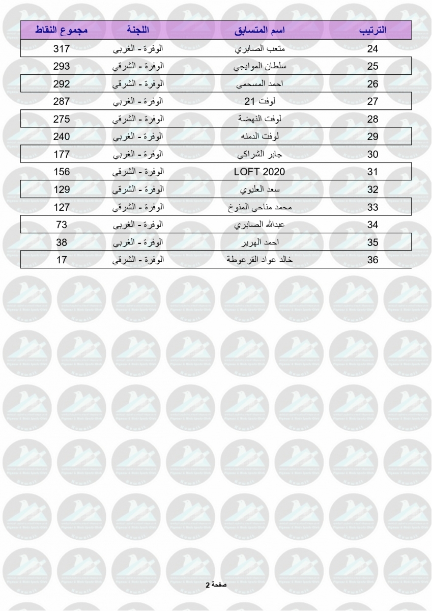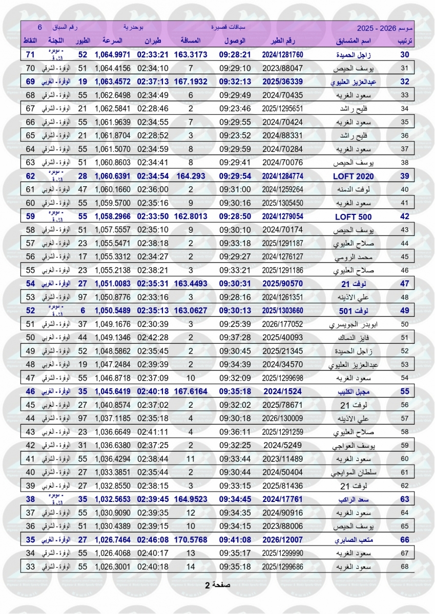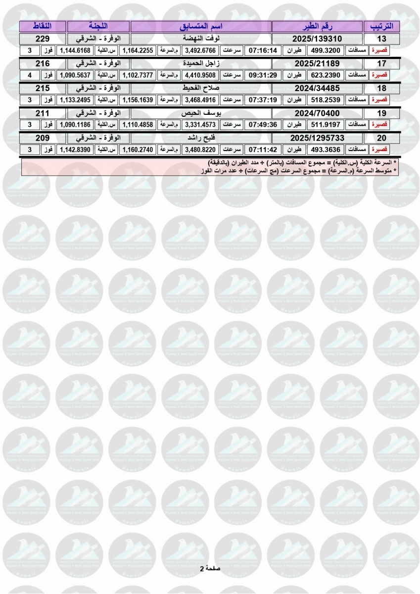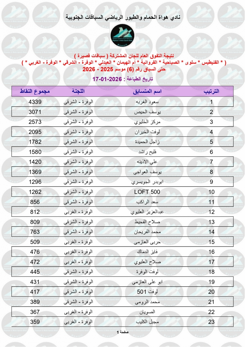 > منتديات الاتحاد الكويتي لسباق حمام الزاجل > منتدي اخبار السباقات > نتائج سباقات الاتحاد الكويتي / Race results > نتيجة السباق السادس - بوحدرية 250 كم - لنادي الوفرة مشتركة (شرقي وغربي)