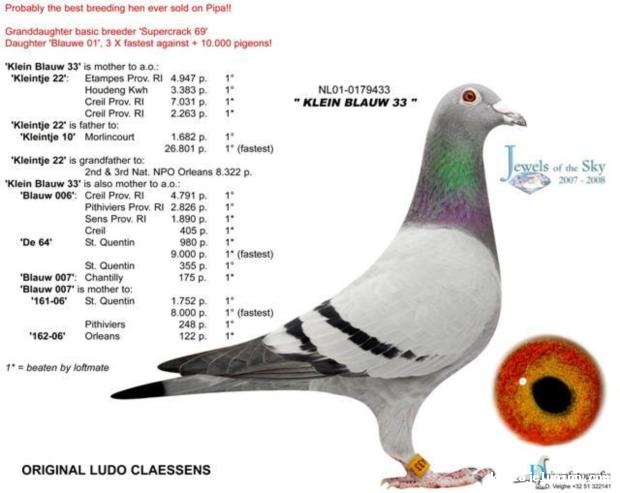 ج – أولا أضع أمامي نتائج الطير ونتائج الأب والجد لأني في اعتقادي أن طير التصليح لابد وأن يكون من أبوين وجدين مصلحين علاوة على أصل الطير والحمد الله ربنا وفقني في اختياري لذه السلالات والتي هي بالفعل من أغلى السلالات في العالم واقواها على الاطلاق وخصوصاً Ludo Claessens والذي كلنا يعرف بكم بيع الذكر والأنثى معاً في مزاد البيبا (145000 يورو ) فقط مائة وخمسة وأربعون ألف يورو .