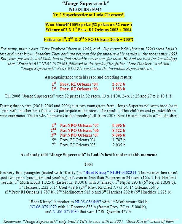 حفيدة Supercrak 69 ونتائج أبناء وأحفاد هذا الطيرة كما هو مبين بالصورة أعلاه