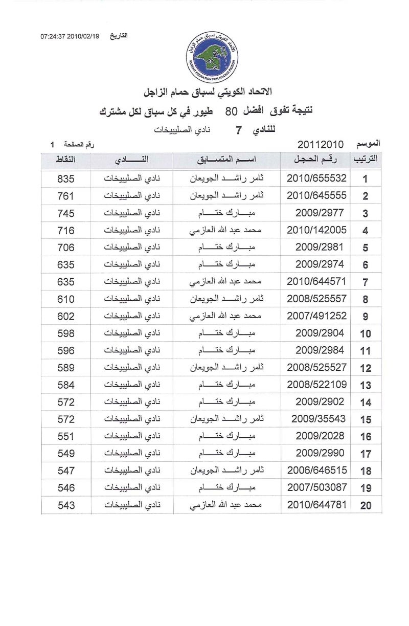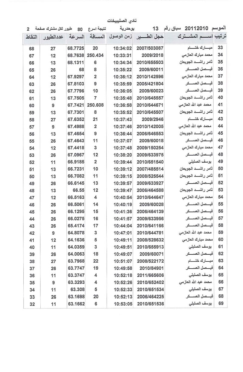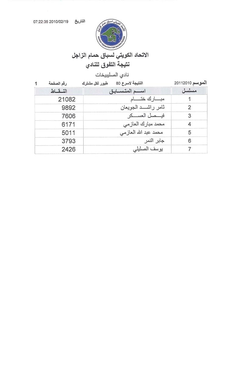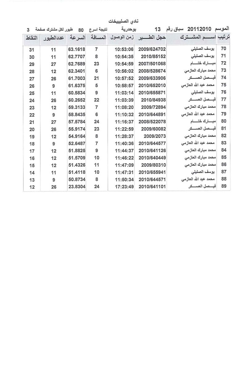 > منتديات الاتحاد الكويتي لسباق حمام الزاجل > منتدي اخبار السباقات > نتائج سباقات الاتحاد الكويتي / Race results > الصليبخات 250 كيلو بوحدرية السباق الثالث عشر موسم 2010/2011