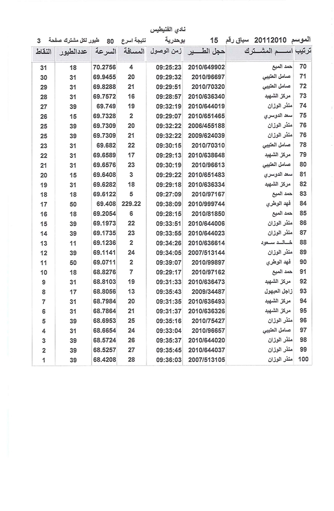 > منتديات الاتحاد الكويتي لسباق حمام الزاجل > منتدي اخبار السباقات > نتائج سباقات الاتحاد الكويتي / Race results > الفنيطيس 250 كيلو بوحدرية السباق الخامس عشر موسم 2010/2011