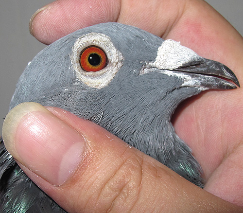 اليكم مسكة الحمام الصحيحة للفحص وانظروا ارجل الحمامة بين اصابع الممسك