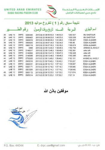 > منتديات الاتحاد الكويتي لسباق حمام الزاجل > أخبار الاتحادات والاندية > اخبار نادي دبي لسباق حمام الزاجل > سباق الفروخ مواليد 2013 الاول من منطقة حفيت 120كم